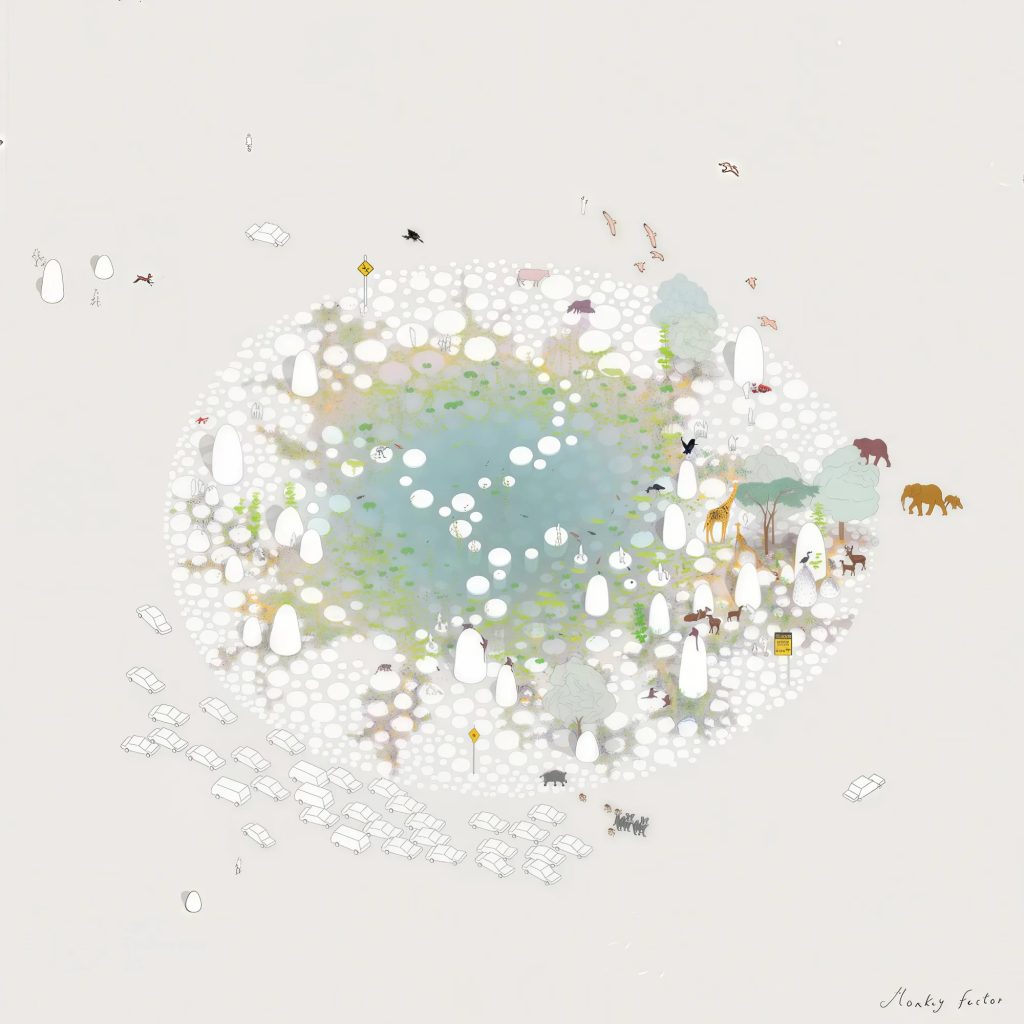 Animals in the City riunisce tre fasi di riflessione sulla città condotte tra il 2008 e il 2023, esplorando come l'architettura e la pianificazione urbana possano tenere conto e integrare la vita degli animali che condividono i nostri ambienti.