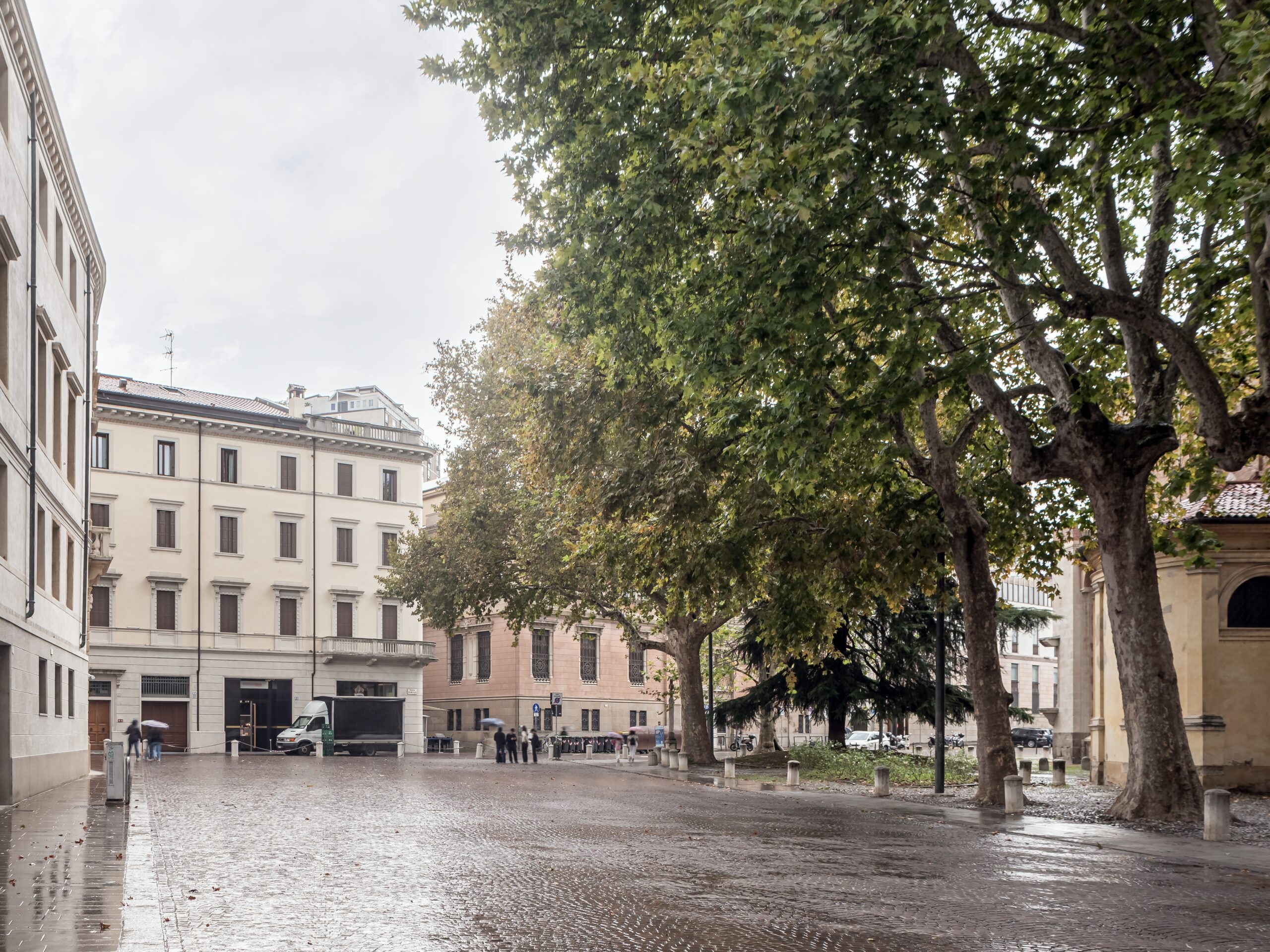 Nel cuore di Padova, a pochi passi dalla suggestiva piazza Eremitani, prende forma il progetto di ristrutturazione di un appartamento di 125 metri quadri che dialoga profondamente con il contesto storico e culturale che lo circonda. La piazza, dominata dall’eleganza sobria della Chiesa degli Eremitani e impreziosita da alberi monumentali, rappresenta un luogo di equilibrio tra memoria e quotidianità, tra arte e vita urbana. Il quartiere, animato da librerie, botteghe e caffè, conserva un carattere autentico e stratificato che diventa parte integrante del progetto.