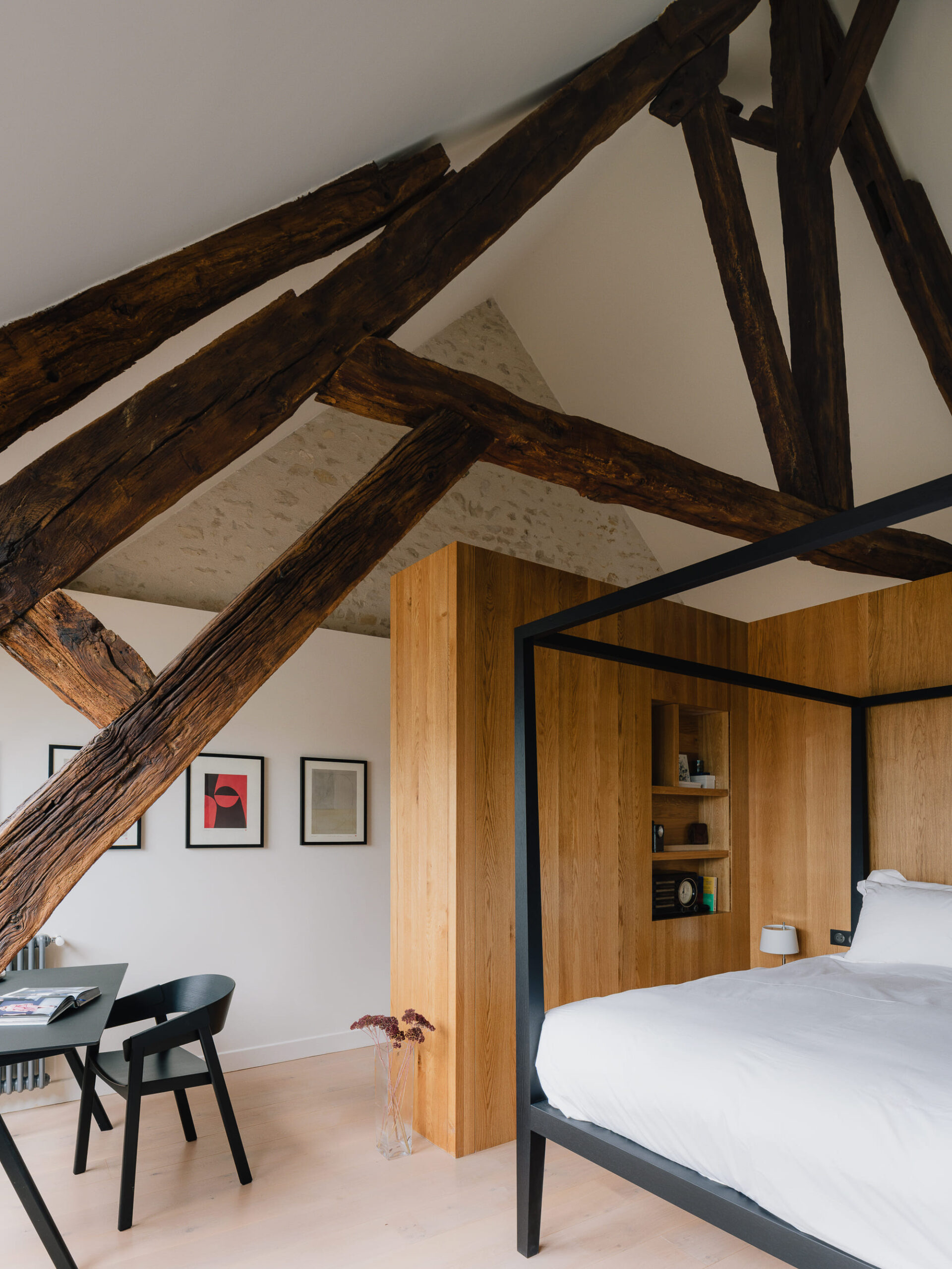 La casa si trova in un piccolo e ben preservato villaggio della Borgogna, Deux Rivières, attraversato da un fiume e noto per la tradizione ceramica sviluppata dopo il 1945. Il progetto dialoga con discrezione con il contesto storico, operando per sottrazione e armonia, senza mai forzare la conversazione con l’esistente.