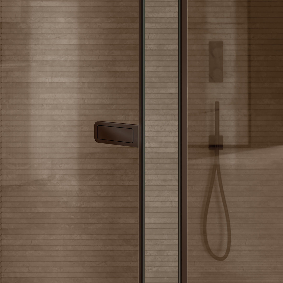 Le finiture e i materiali sono tra gli elementi che concorrono alla personalizzazione dei progetti, per questo Vismaravetro continua la ricerca di nuove nuances e trattamenti sui materiali di elezione, cristalli e profili: già da qualche tempo, proponendo sui profili il rame spazzolato e il bronzo scuro, Vismaravetro si è distinta come azienda capace di delineare nuove tendenze stilistiche nel design dei box doccia.