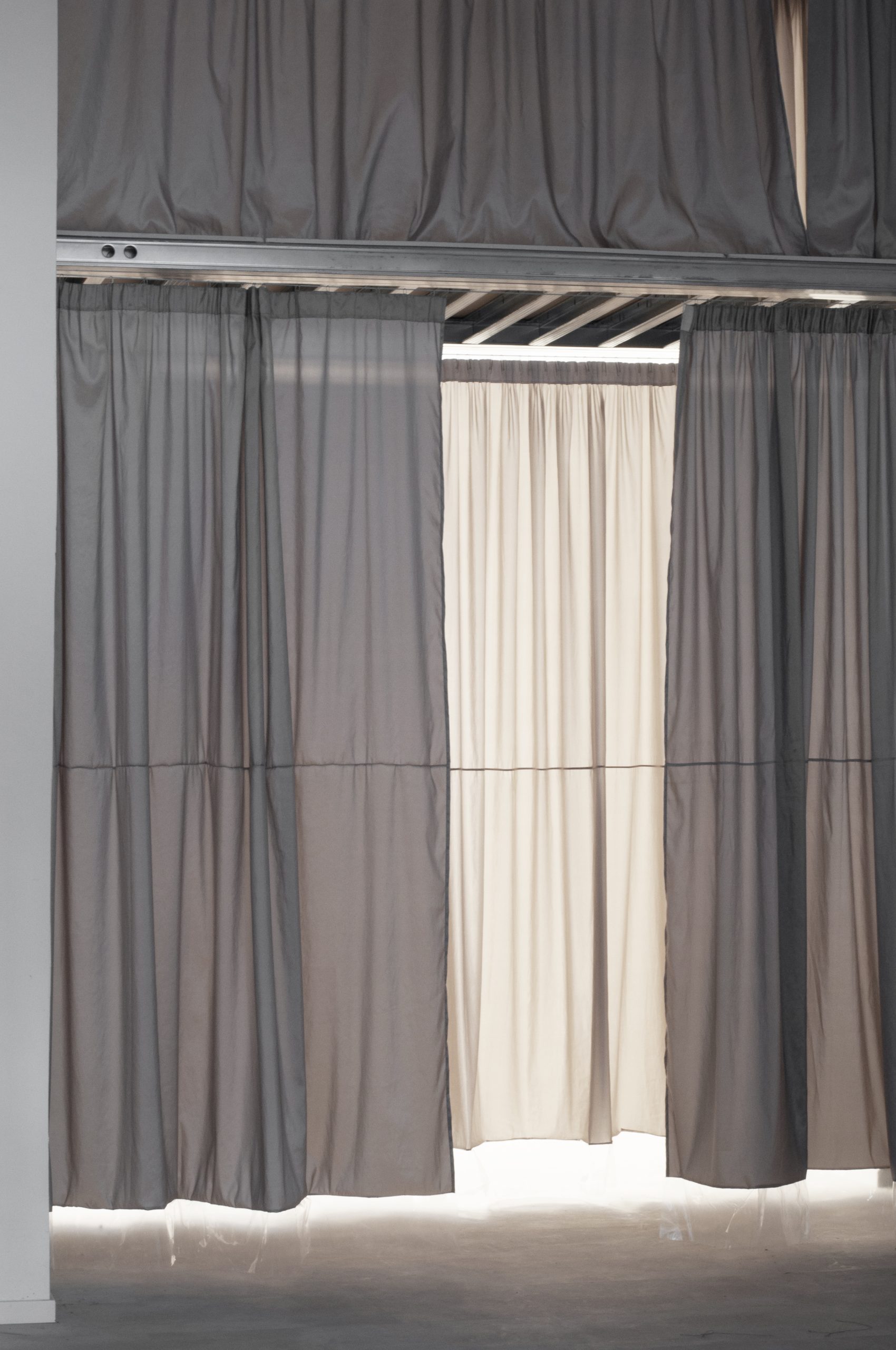 Pochi materiali caratterizzano Fanfarlo: un pavimento in resina cementizia a terra, una tenda, un sistema specchiante che unisce la funzione al riverbero spaziale e infine il muro abitato centrale dove sono nascoste gran parte delle funzioni della scuola. Quest'ultimo, realizzato con una struttura metallica leggera e piani in cartongesso, con lunge tende movibili che ne rivestono i due lati, il mobile combina rigore economico e libertà d’uso, trasformando una soluzione costruttiva semplice in un dispositivo spaziale complesso.