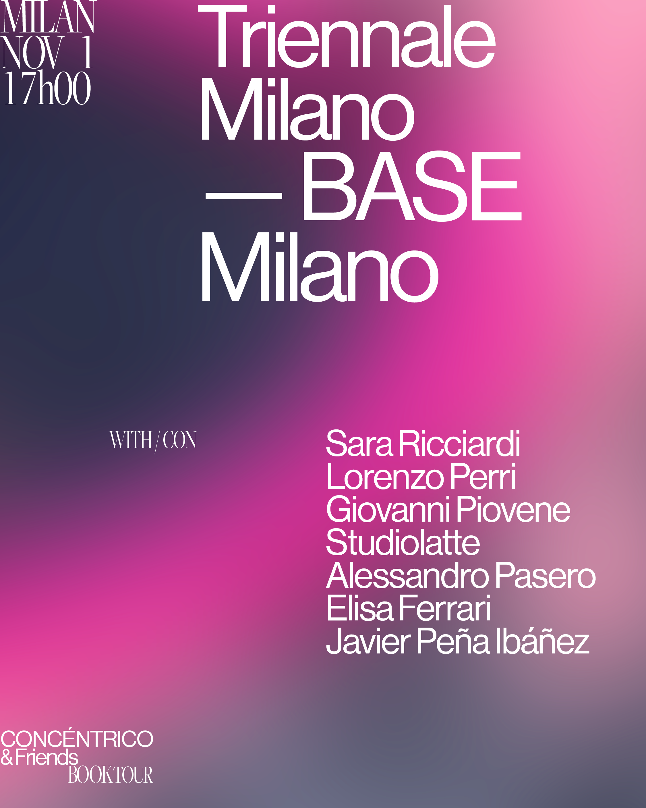 The Triennale Milano hosts the presentation Concéntrico x BASE, featuring Javier Peña IbáñezSara RicciardiLorenzo PerriGiovanni PioveneStudiolatteElisa Ferrari and Alessandro Pasero, in a conversation on the connections between design, architecture and new ways of activating public space.