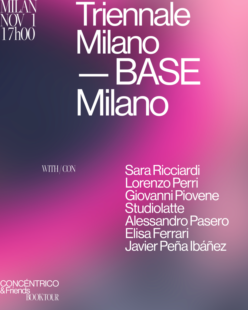 The Triennale Milano hosts the presentation Concéntrico x BASE, featuring Javier Peña Ibáñez, Sara Ricciardi, Lorenzo Perri, Giovanni Piovene, Studiolatte, Elisa Ferrari and Alessandro Pasero, in a conversation on the connections between design, architecture and new ways of activating public space.