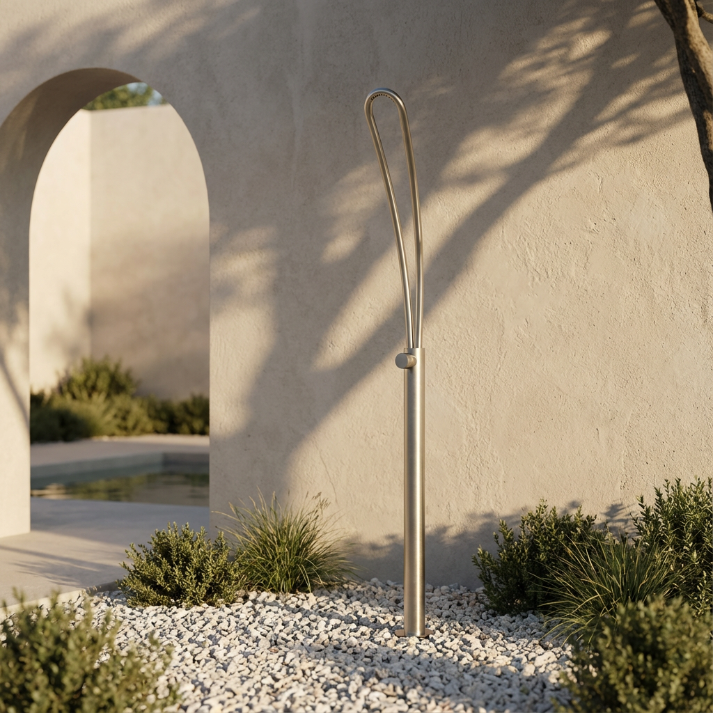 Questa attenzione al benessere si sposa con una rigorosa selezione dei materiali: la colonna è realizzata interamente in acciaio inox AISI 316L con finitura spazzolata, una scelta che assicura non solo un’estetica contemporanea ma anche una resistenza superiore alle intemperie e agli sbalzi climatici, garantendo durata e bellezza inalterata nel tempo.