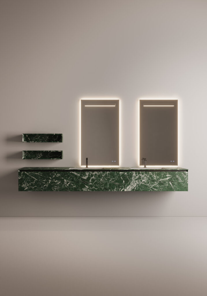 Disegnata nel 2012 da Riccardo Gava, designer e art director dell’azienda, Cubik si è imposta nel tempo come un riferimento per la sua cifra formale distintiva. I bordi inclinati a 45° di ante e cassetti, privi di maniglie esterne, definiscono un’estetica pulita e continua, dove l’apertura si risolve in un gesto minimo e quasi invisibile. Un dettaglio che ha contribuito a consolidare la collezione nel panorama dell’arredo bagno contemporaneo, mantenendone intatta l’attualità.
