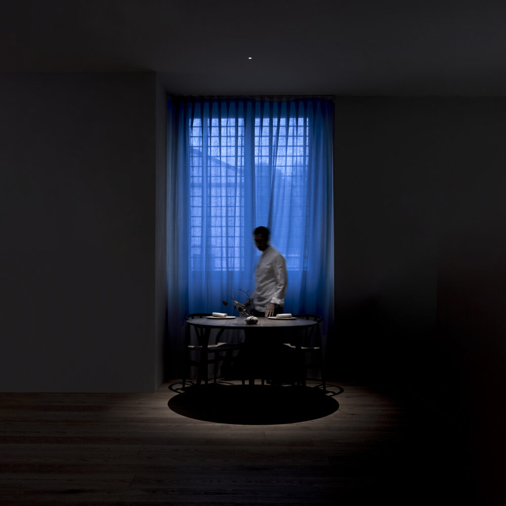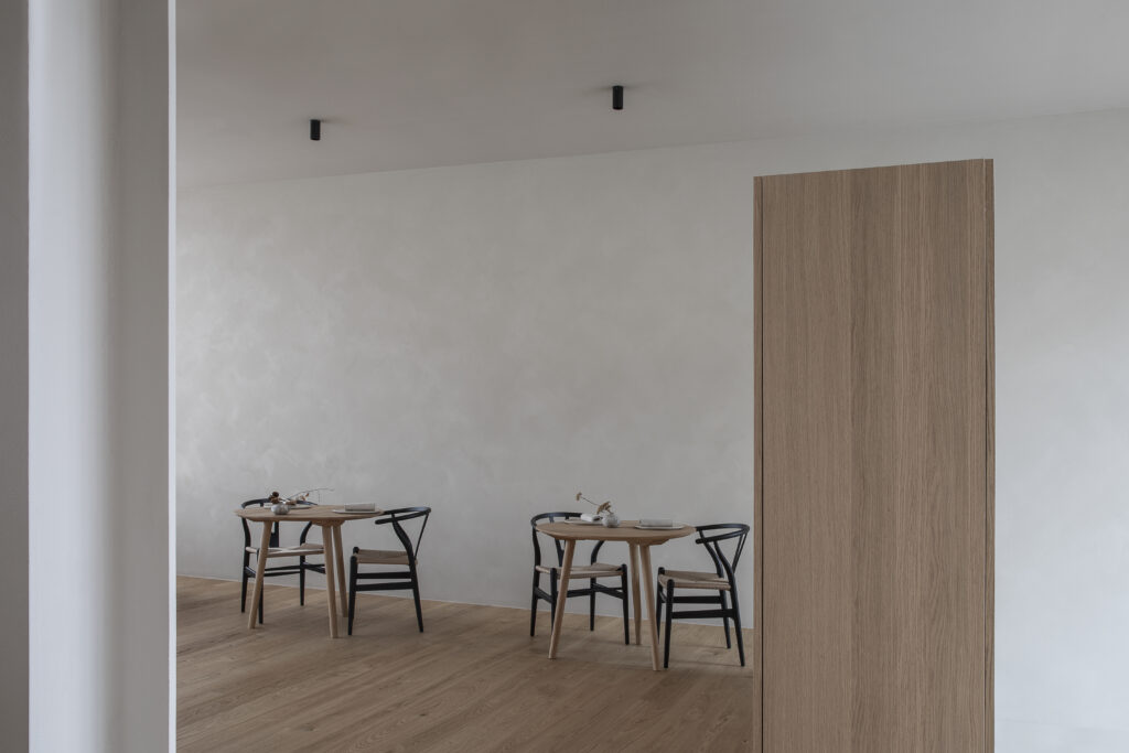 La cucina si differenzia per essere guidata dalla stagionalità, dalla qualità delle materie prime e, soprattutto, dalla semplicità. Attraverso Abba Milano lo chef desidera creare uno spazio in cui l’ospite può sentirsi a proprio agio, come a casa: un ambiente accogliente e domestico, ma al contempo estremamente funzionale. La palette materica è volutamente ridotta e costruita attorno a materiali autentici: legno di rovere europeo, pietra naturale, lino e superfici materiche. I toni neutri e caldi creano uno sfondo misurato che valorizza la presenza degli arredi black firmati Carl Hansen & Søn, inseriti in modo naturale ma allo stesso tempo determinato all’interno dello spazio.