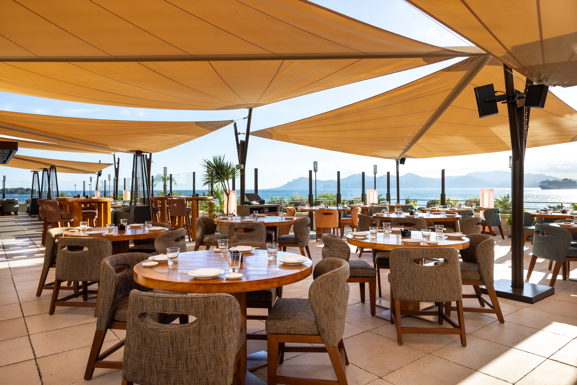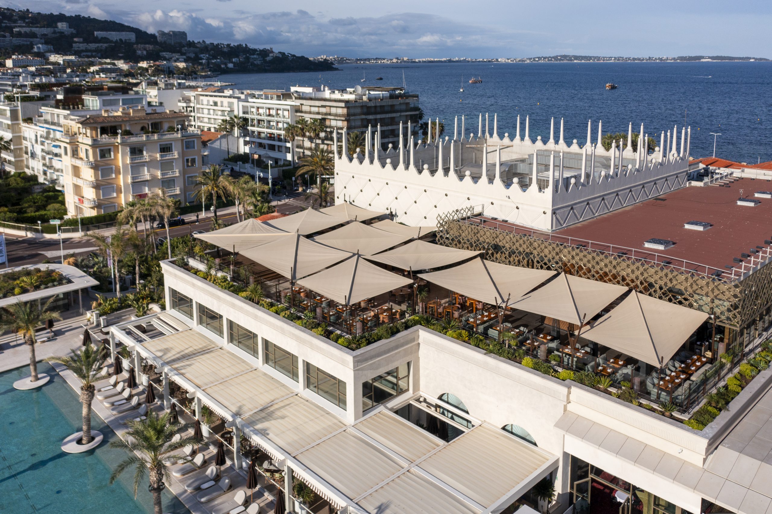 Nel cuore della Costa Azzurra, all’interno dell’iconico Palm Beach Cannes, il ristorante Zuma Cannes — primo avamposto francese del celebre brand giapponese — si affaccia sul Mediterraneo offrendo una vista spettacolare sulle Isole di Lérins. In questo luogo simbolo del lusso e della gastronomia internazionale, la terrazza panoramica è stata completamente ripensata per offrire un’esperienza ancora più raffinata e confortevole, grazie all’intervento di KE e alla sua vela ombreggiante Kheope.