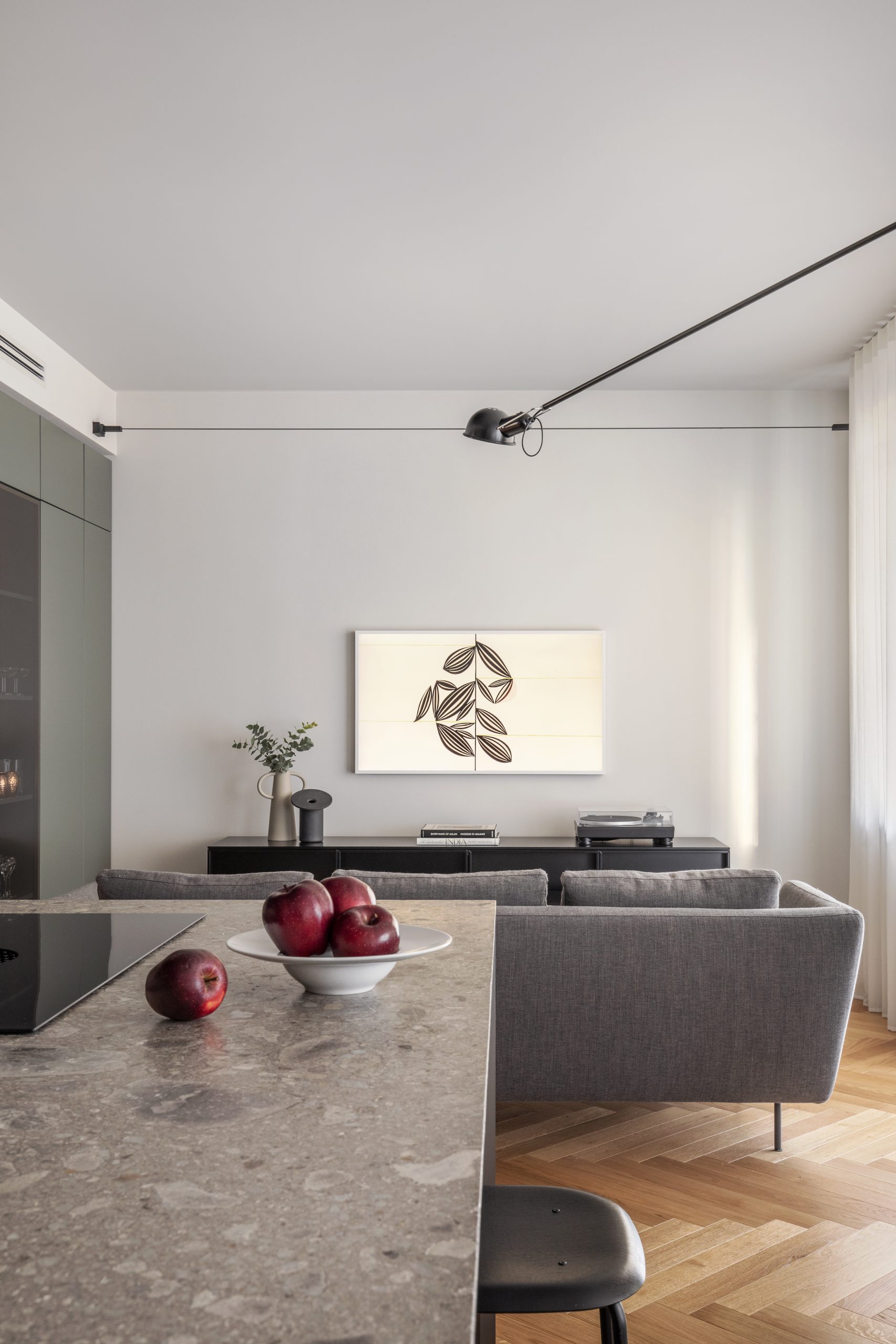 Il recente progetto di ristrutturazione di un appartamento nel cuore di Milano ha trasformato un ambiente frammentato in uno spazio moderno e funzionale, in una residenza moderna e accogliente. Questa ristrutturazione è stata concepita per ottimizzare la disposizione degli spazi, con l'inserimento di una seconda camera da letto e uno studio/camera per gli ospiti, garantendo al contempo un soggiorno ampio e confortevole.