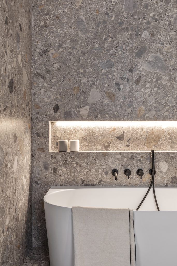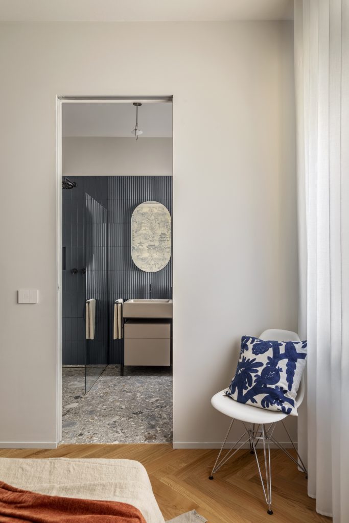 Nel progetto di ristrutturazione, la scelta delle soluzioni Diametro35 di Ritmonio ha giocato un ruolo fondamentale nel conferire unicità e carattere agli spazi bagno. La collezione si distingue per le sue geometrie armoniose e il design contemporaneo, che esprimono l’equilibrio perfetto tra estetica e funzionalità. Con l’innovativa leva allungata, Diametro35 garantisce una facilità d'uso e un'ergonomia migliorata, elevando l'esperienza quotidiana.