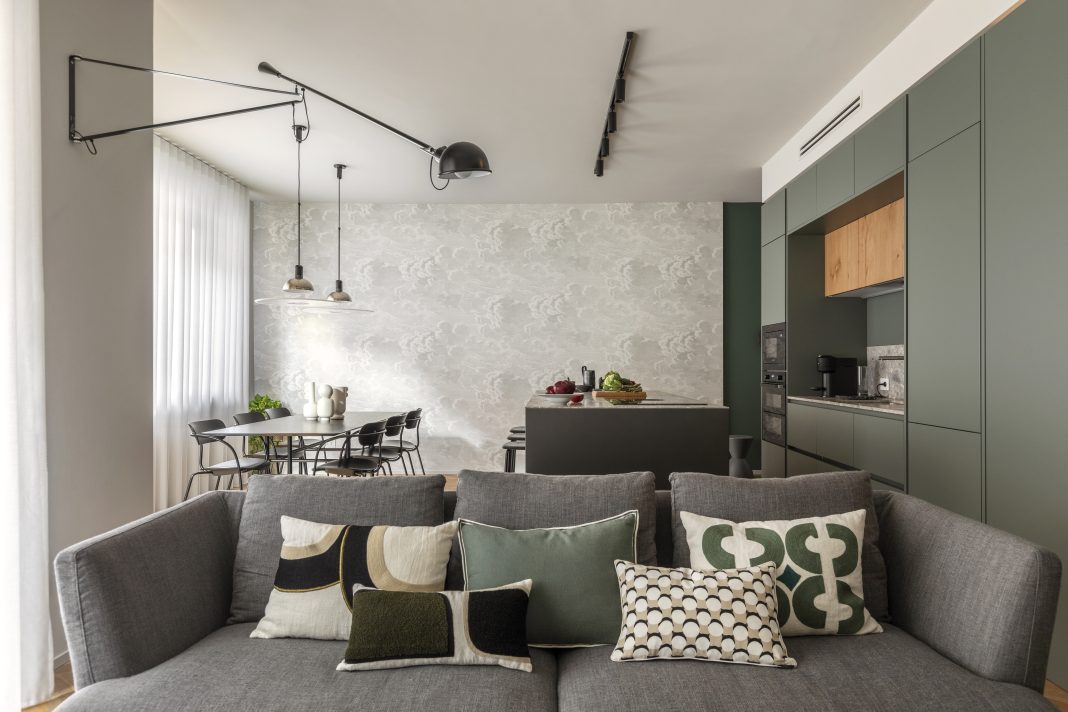 L’appartamento, originariamente caratterizzato da spazi chiusi e una cucina separata, ora presenta un open space elegante e luminoso. Il progetto ha previsto l'inserimento di cabine armadio e armadi a scomparsa, massimizzando l’efficienza dello spazio e creando una fluidità tra gli ambienti. Particolare attenzione è stata dedicata alla valorizzazione della luce naturale, con arredi posizionati strategicamente per illuminare le aree più vissute durante il giorno.