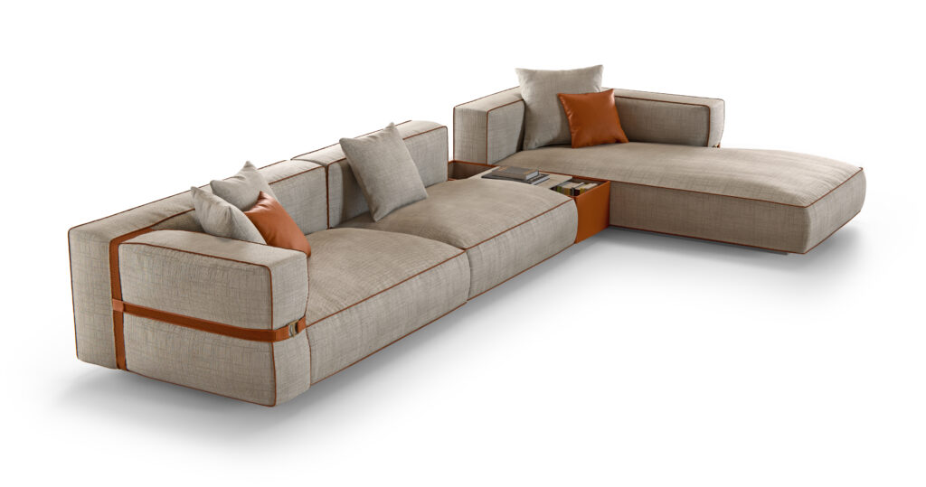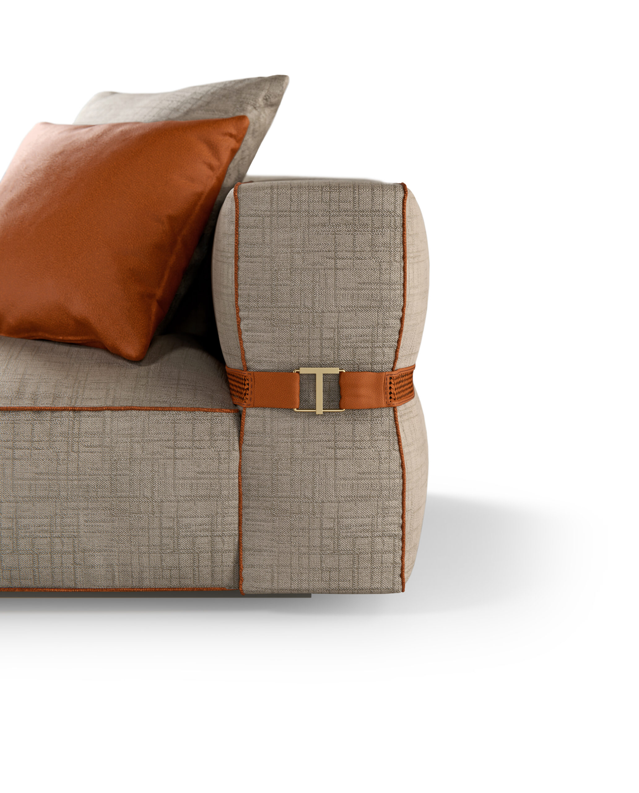 Con un segno discreto ma fortemente identitario, B.E.L.T. richiama il mondo dell’alta pelletteria su misura e trasforma il divano in un oggetto contemporaneo da collezione.
