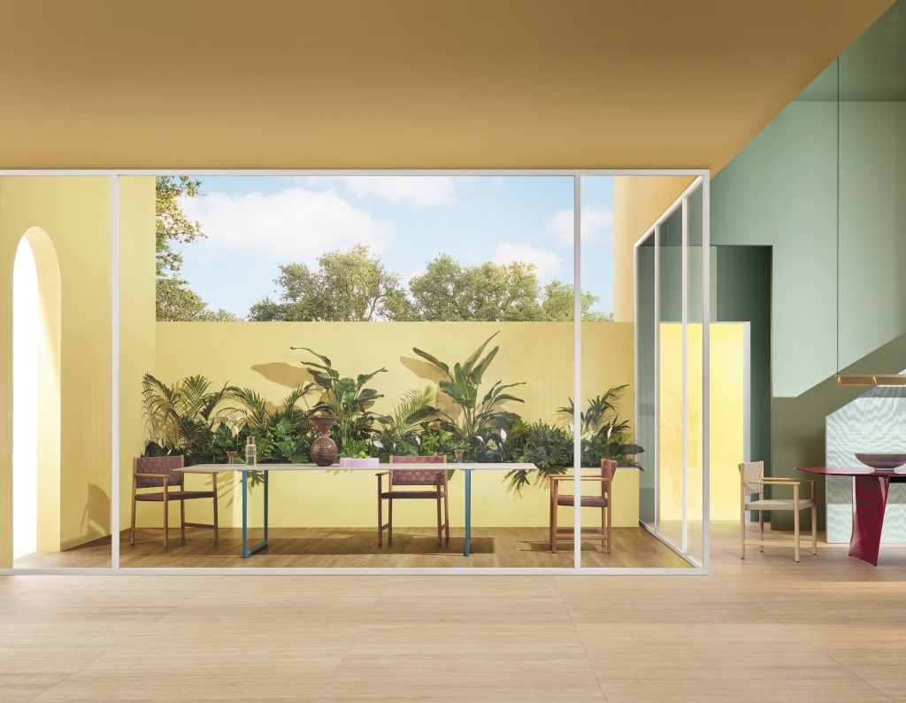 Entrambe le versioni includono sedia, poltrona e lounge, con strutture in materiali diversi: il teak, essenza tropicale resistente agli agenti atmosferici per l’esterno, e il frassino per gli interni, entrambi certificati FSC® C114358. I designer sottolineano: “Quando il legno è usato con saggezza, sa restituire anche leggerezza oltre che solidità strutturale”.