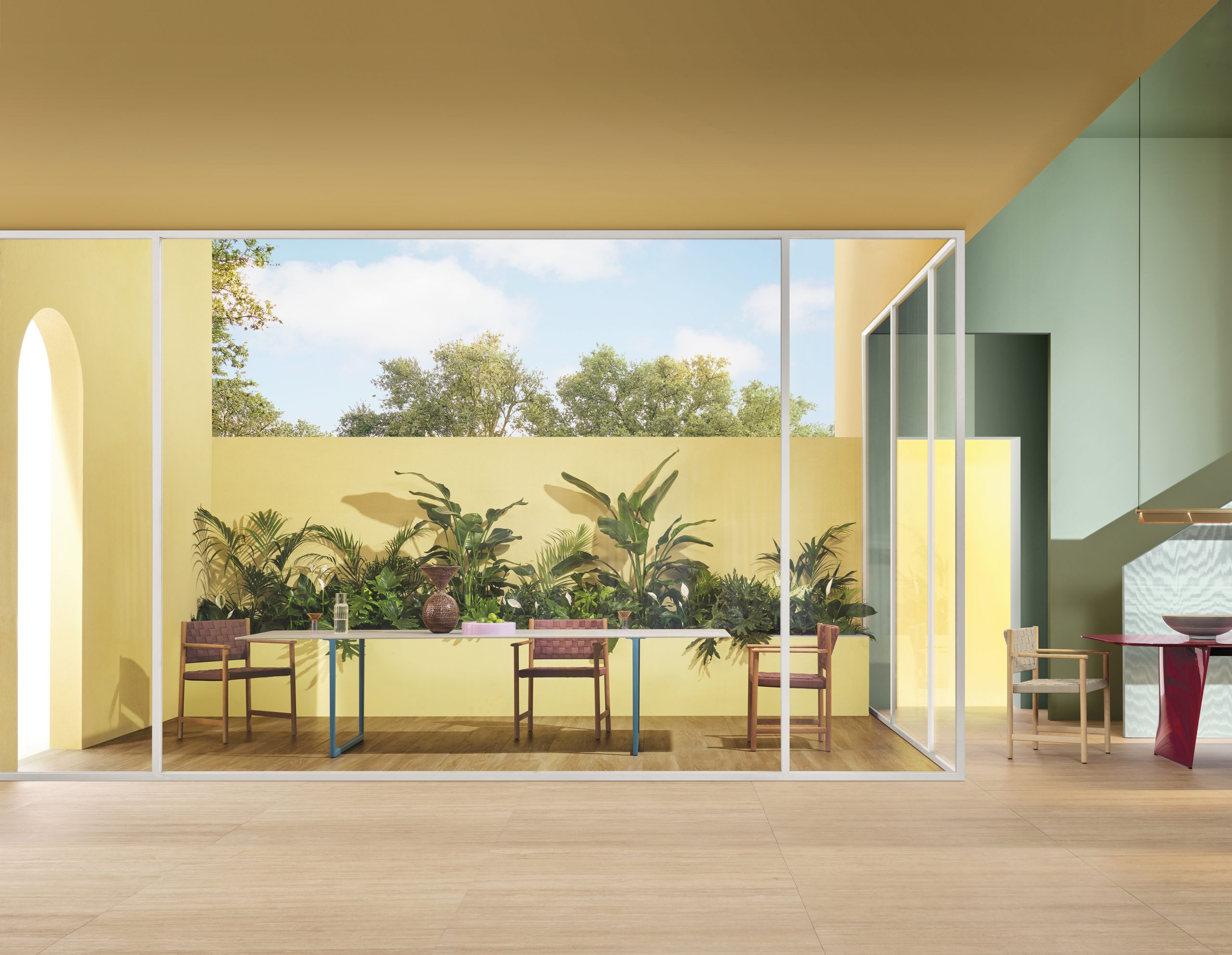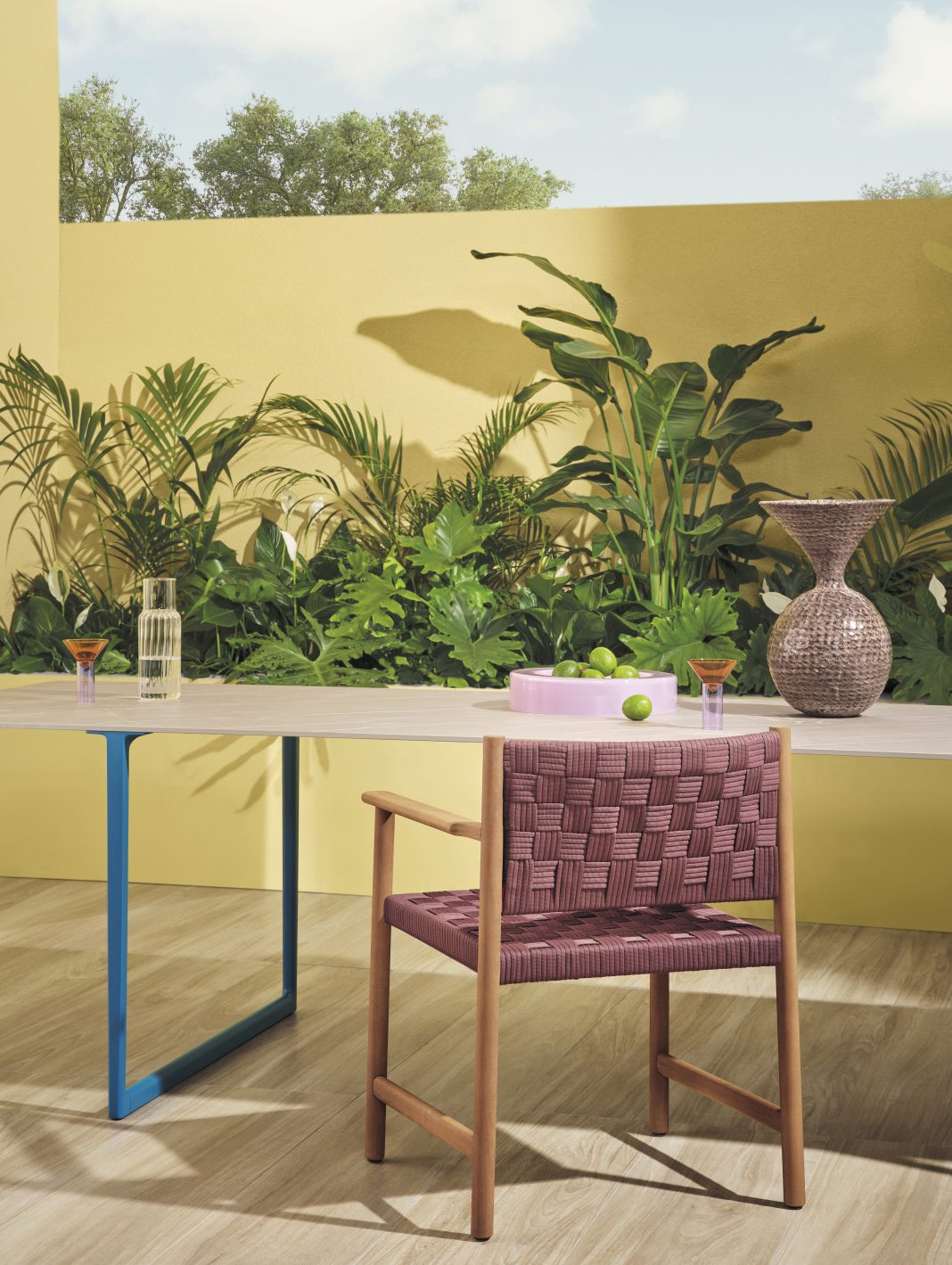 Grazie alla lavorazione accurata e a un sistema di assemblaggio meccanico, Griante è leggera, solida e facile da disassemblare. È perfetta per spazi outdoor – sotto un pergolato o nei dehors di ristoranti eleganti – ma anche per ambienti interni, dove la versione in frassino trova posto in sale da pranzo e lounge, creando atmosfere raffinate e accoglienti.