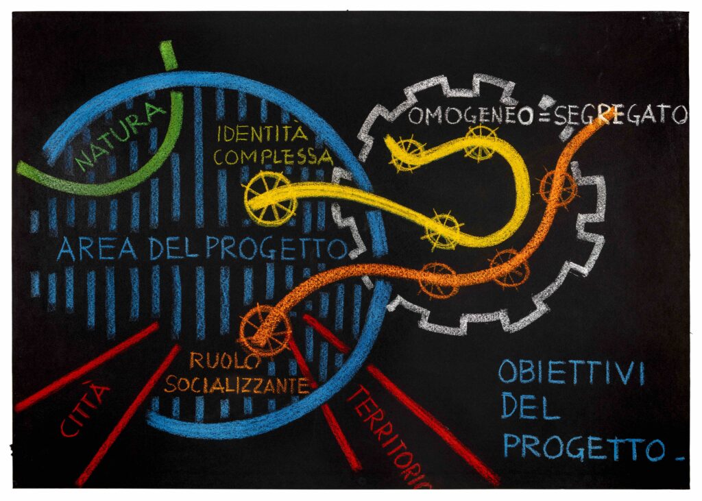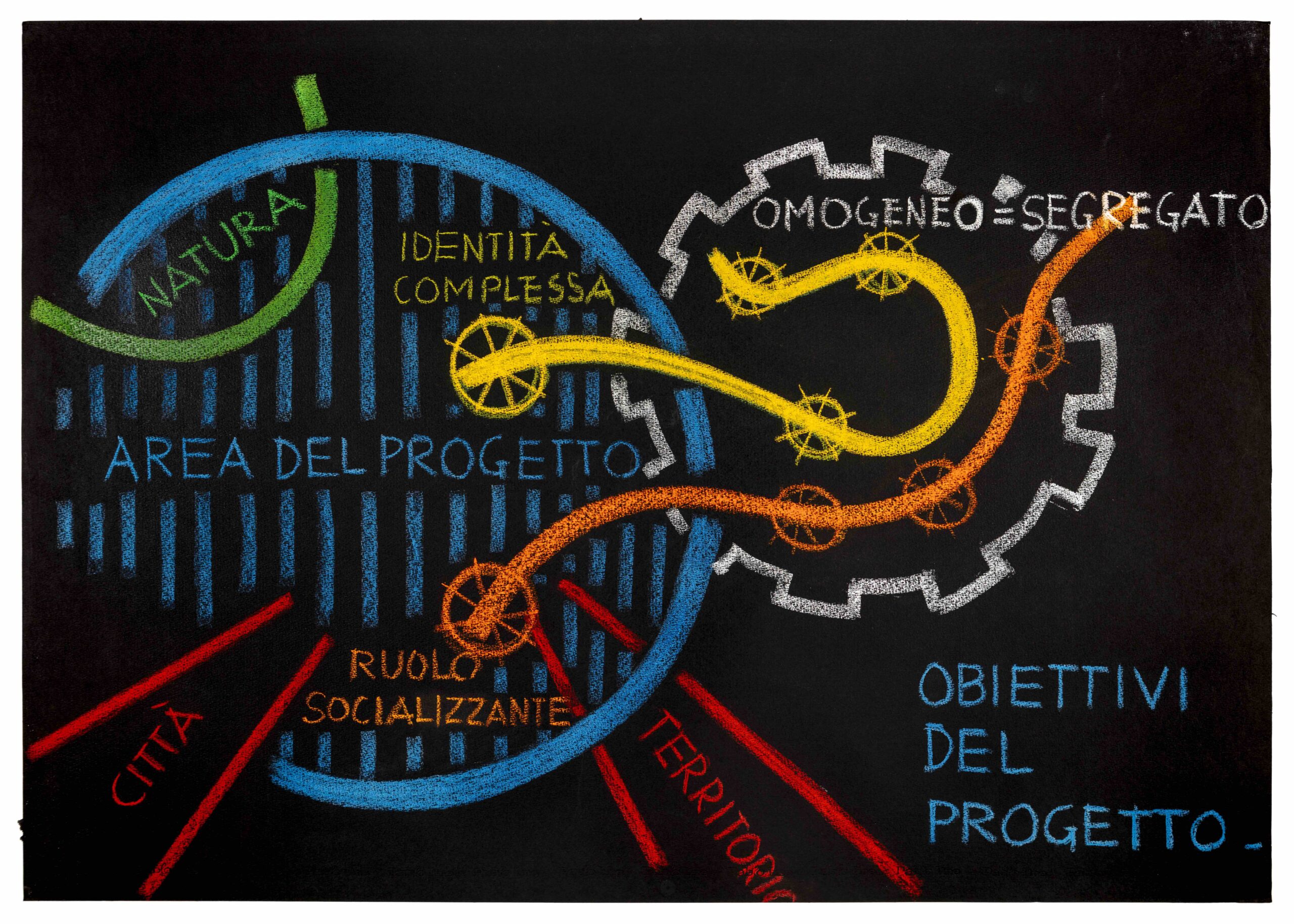 La mostra si sviluppa in quattro sale, dove su grandi tavoli sono esposti i disegni. Il corpus grafico è eterogeneo e restituisce la complessità e l’avvicendamento delle esperienze di un secolo, rivelando continuità e discontinuità nel linguaggio, nei metodi e nelle finalità del progetto: schizzi, studi urbani, diagrammi, mappe interpretative, esercizi didattici e raffigurazioni sperimentali.