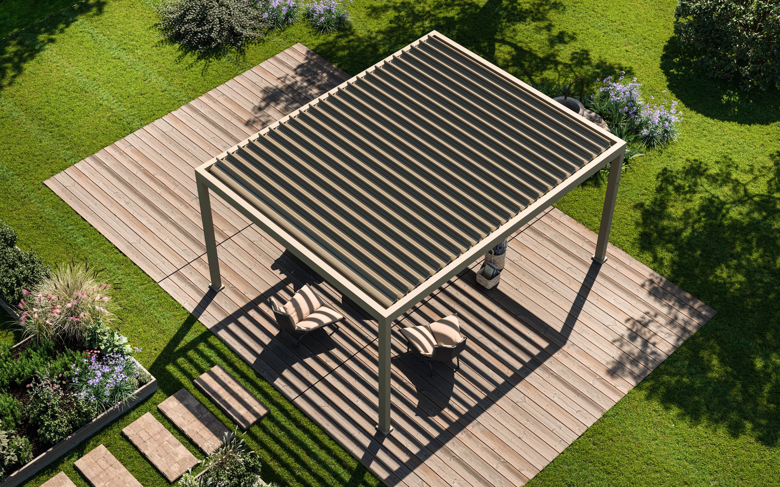 Anche le colorazioni si rifanno alla filosofia della semplicità raffinata. Le pergole sono verniciate all’interno dello stabilimento Pratic con polveri certificate, a basso impatto ambientale e altamente resistenti a salsedine, umidità e raggi UV.