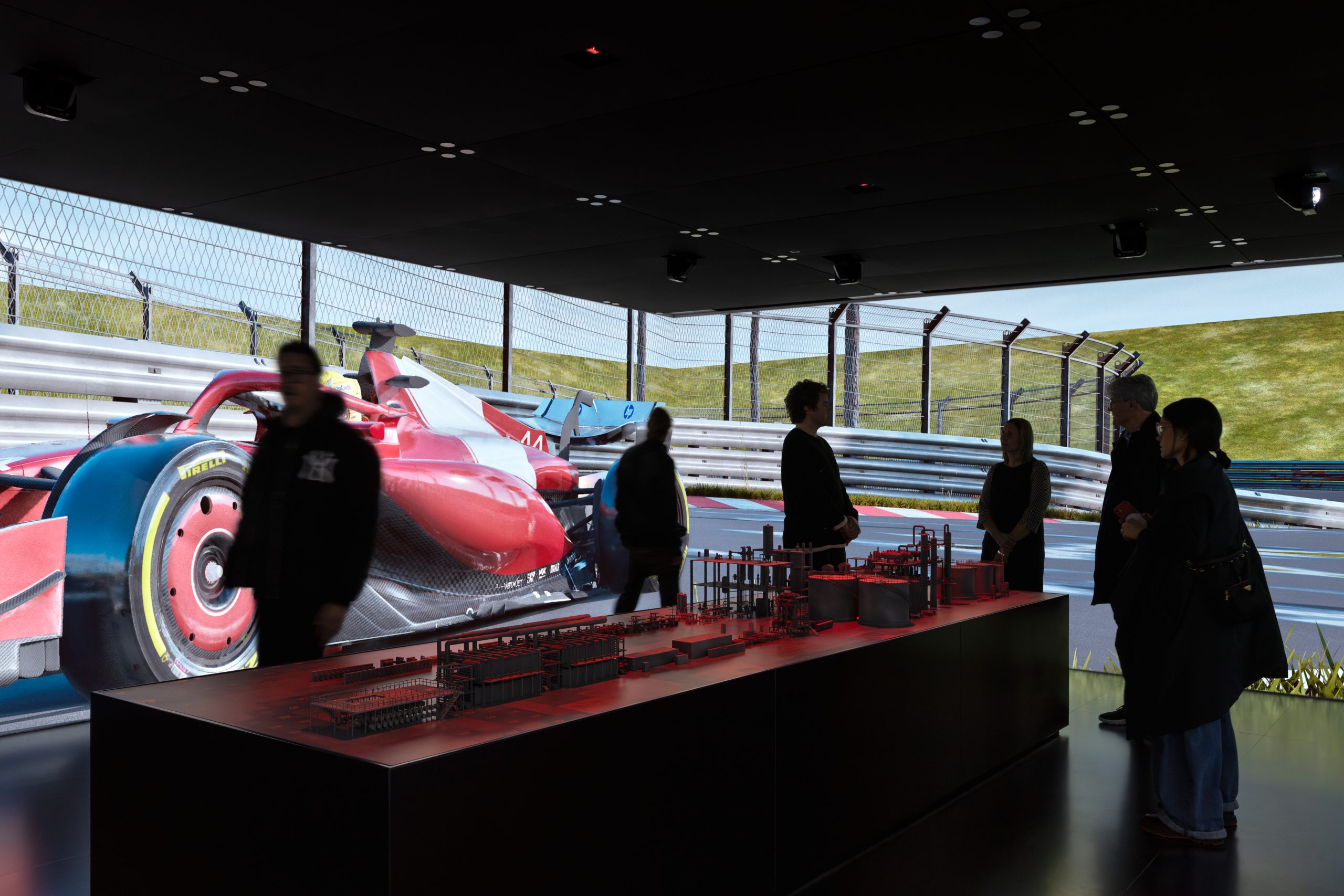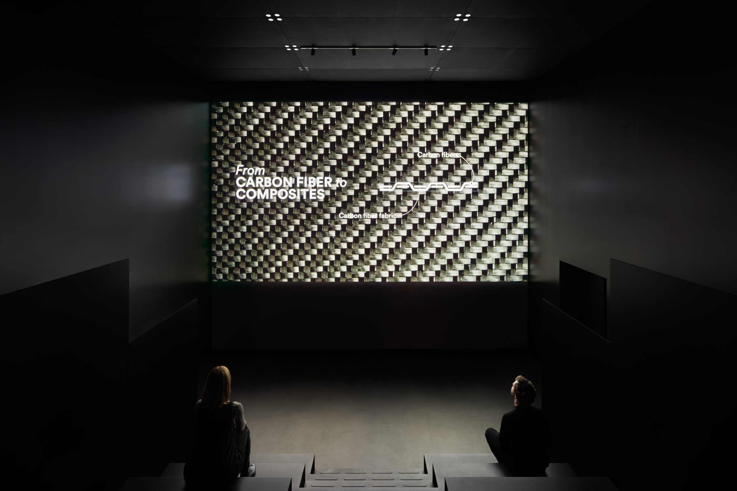 Il percorso prosegue nel Carbonization Tunnel, uno spazio immersivo in cui luce e calore rievocano la trasformazione della fibra acrilica in fibra di carbonio. Qui l’architettura diventa strumento narrativo, traducendo forze invisibili come pressione, compressione e rilascio in un’esperienza fisica e sensoriale. Grazie ai dati in tempo reale provenienti dai laboratori MAE, il museo si connette direttamente alla ricerca in corso, configurandosi come un laboratorio vivente. Un ulteriore ambiente immersivo presenta le applicazioni più avanzate della fibra di carbonio, attraverso un mock-up di un impianto produttivo animato da realtà aumentate.