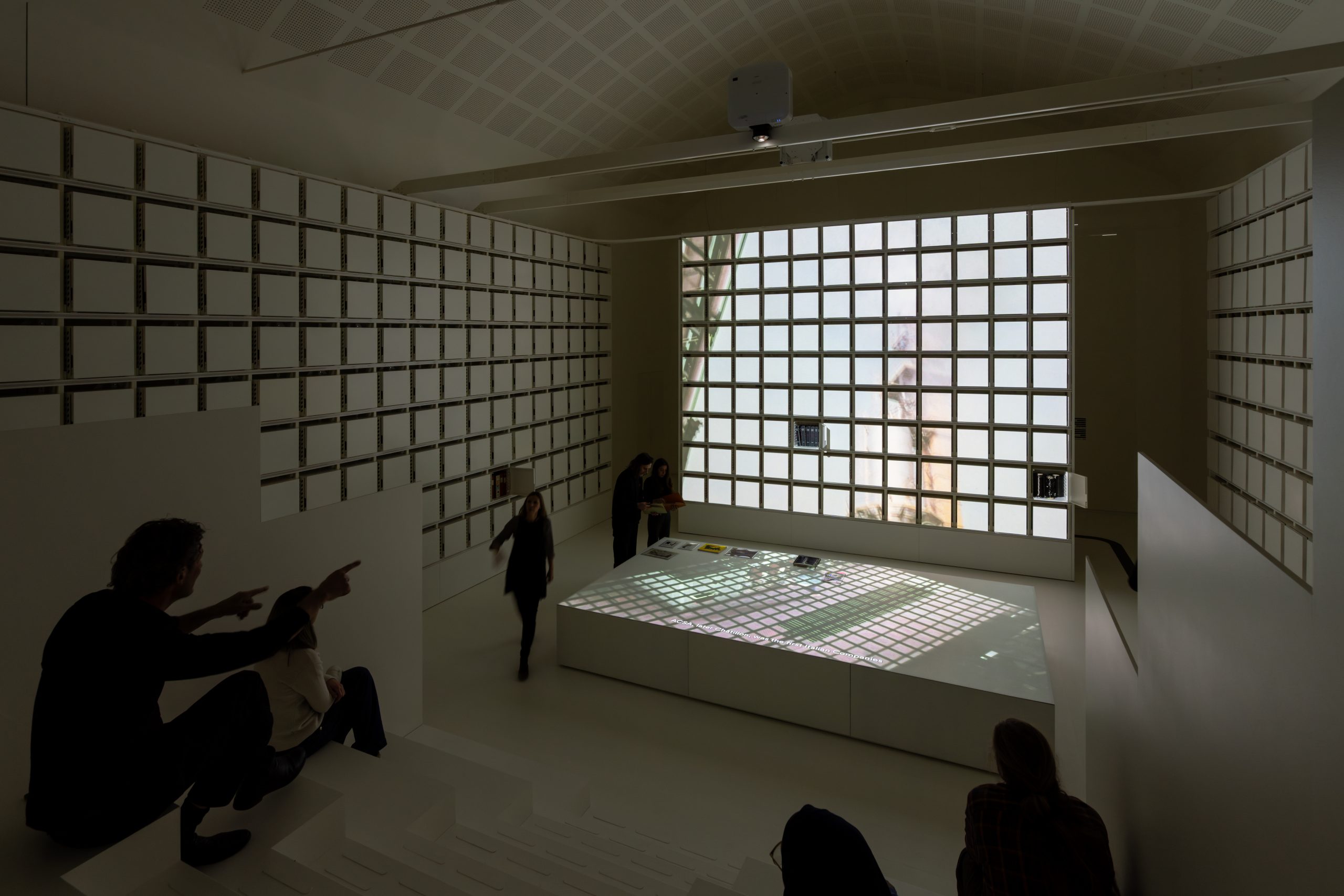 Il percorso espositivo si apre con l’archivio MAE, che custodisce uno dei più rilevanti patrimoni di proprietà intellettuale al mondo legati alla produzione della fibra acrilica, precursore della fibra di carbonio. Qui, l’archivio si presenta come un paesaggio tridimensionale di contenitori, una matrice interattiva arricchita da livelli digitali che permettono a visitatori e ricercatori di esplorare documenti, brevetti e processi produttivi. Non un archivio statico, ma un museo vivo, pensato per stimolare connessioni, domande e nuove interpretazioni.