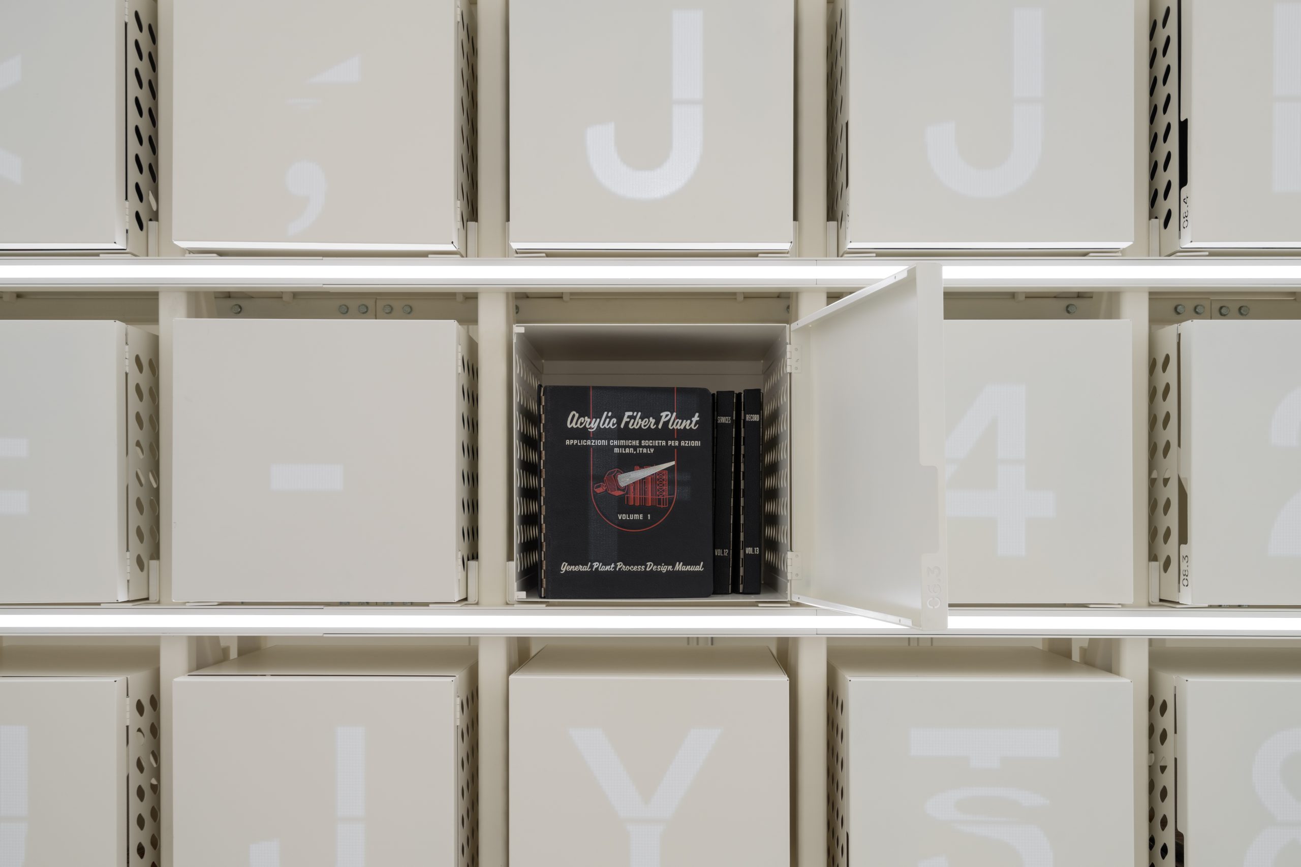 Il percorso espositivo si apre con l’archivio MAE, che custodisce uno dei più rilevanti patrimoni di proprietà intellettuale al mondo legati alla produzione della fibra acrilica, precursore della fibra di carbonio. Qui, l’archivio si presenta come un paesaggio tridimensionale di contenitori, una matrice interattiva arricchita da livelli digitali che permettono a visitatori e ricercatori di esplorare documenti, brevetti e processi produttivi. Non un archivio statico, ma un museo vivo, pensato per stimolare connessioni, domande e nuove interpretazioni.
