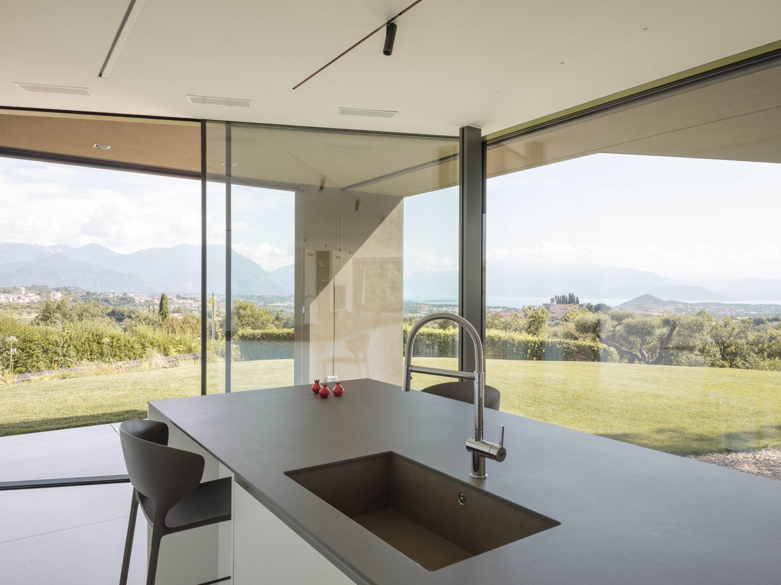 A livello energetico, un involucro continuo elimina i ponti termici e integra serramenti performanti e sistemi di ombreggiamento definiti tramite simulazioni dinamiche. Ventilazione meccanica con recupero efficiente, deumidificazione e climatizzazione radiante garantiscono comfort e qualità dell’aria. Pompa di calore, impianto fotovoltaico da 19,36 kW e sistemi di accumulo riducono sensibilmente le emissioni. Tutti i materiali sono selezionati secondo criteri di riciclabilità, in linea con gli obiettivi europei per gli edifici a impatto contenuto.