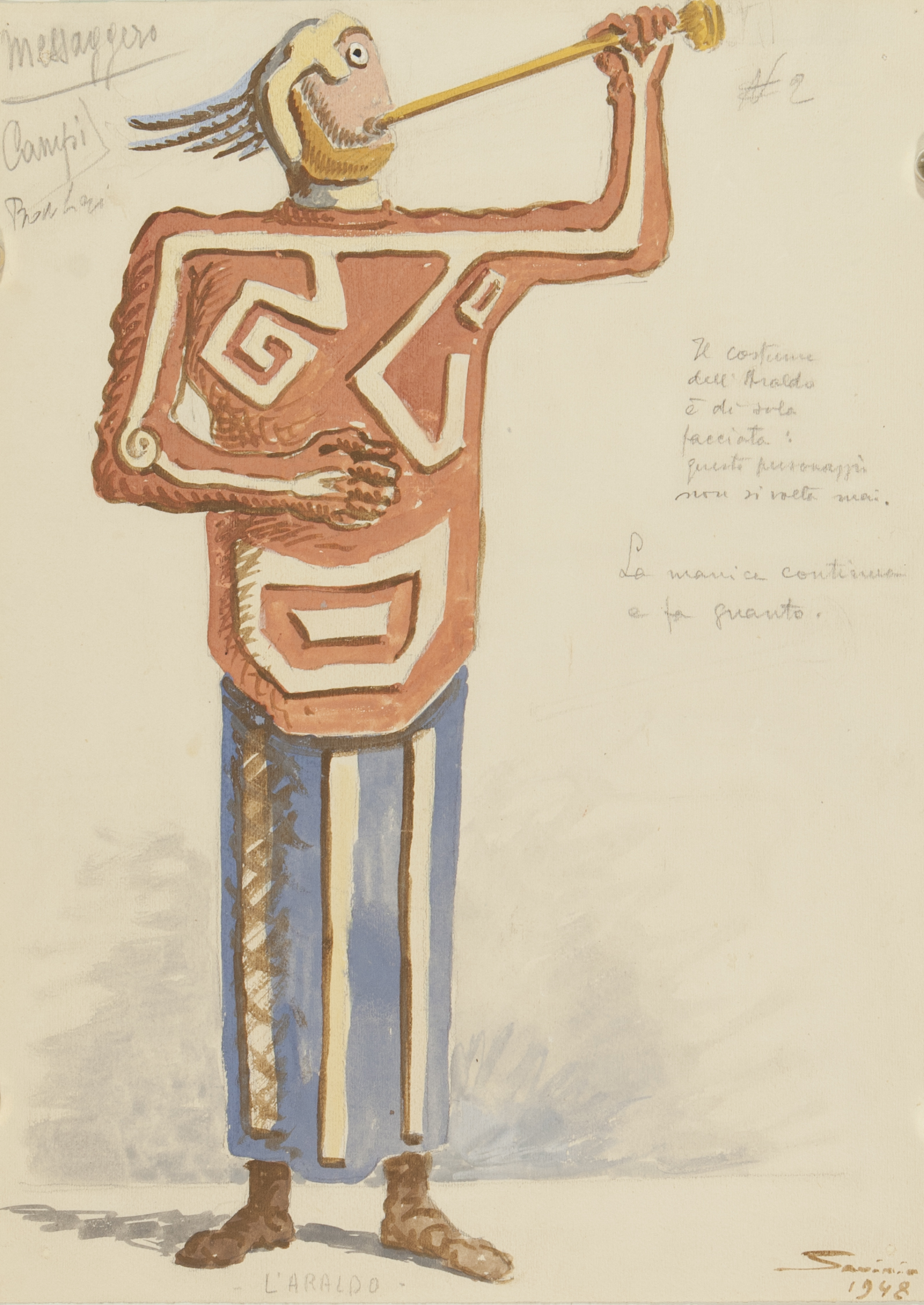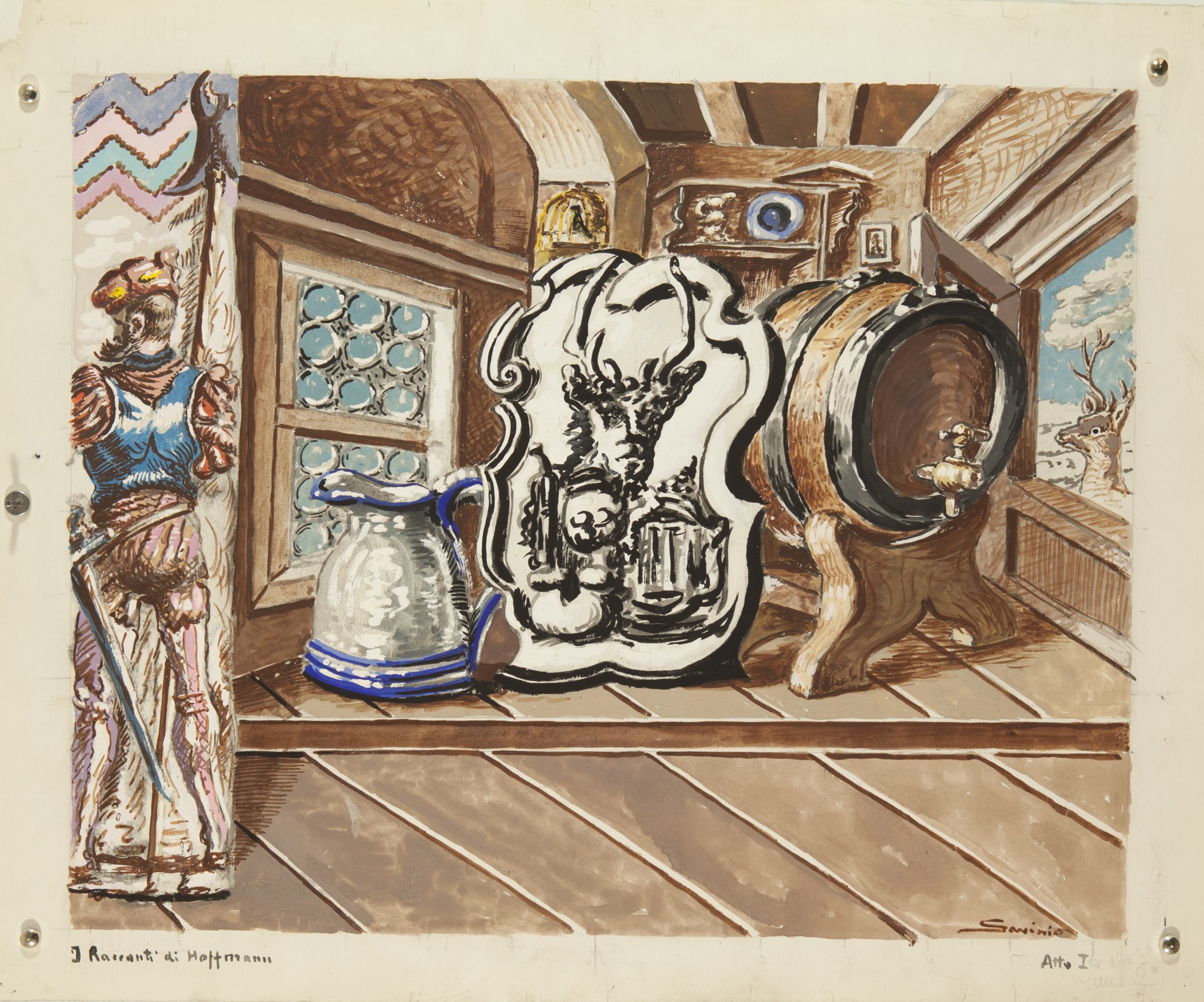 Al Museo del Novecento, negli Archivi Ettore e Claudia Gian Ferrari, un approfondimento sul rapporto tra la Metafisica e Milano: viene indagato il legame, per certi versi sorprendente, tra alcuni protagonisti del gruppo guidato da de Chirico e la città, crocevia artistico e intellettuale, ma anche laboratorio di sperimentazione e dialogo tra le arti. Nello spazio espositivo, il pubblico incontra una selezione di disegni, maquette, abiti, materiali d’archivio e fotografie, a testimonianza dell’attività di de Chirico, Savinio e Carrà nel capoluogo lombardo e della loro collaborazione con alcune delle più importanti istituzioni artistiche e culturali cittadine. In particolare, bozzetti di scenografie e costumi da loro realizzati tra gli anni quaranta e cinquanta per il Teatro alla Scala e fotografie d’epoca e disegni preparatori dei Bagni Misteriosi progettati per la Triennale di Milano.