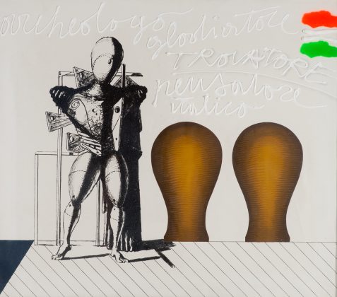 Da Mario Sironi a Felice Casorati, da René Magritte a Max Ernst, da Salvador Dalí a Andy Warhol. E ancora da Mimmo Paladino a Giulio Paolini, da Jannis Kounellis a Francesco Vezzoli, da Aldo Rossi a Gio Ponti, da Paolo Portoghesi a Frank Gehry, da Mimmo Jodice a Gabriele Basilico, da Giorgio Armani a Fendi, da Paolo Sorrentino a Tim Burton fino ai Genesis, ai Pink Floyd e a molti altri ancora. “Episodi lontani e diversi, che sembrano non avere niente in comune, nati dall’immaginazione di artisti distanti dal punto di vista generazionale, culturale e linguistico’ spiega il curatore. ‘E, tuttavia, pur se per sentieri segreti, in maniera non sempre del tutto intenzionale, queste voci sono accomunate da una specifica postura. Una sorta di inconfondibile manière de voir, ispirata a un’esperienza poetica laterale, clandestina e forse marginale, maturata più di un secolo fa in una città di provincia, posta fuori della storia”.