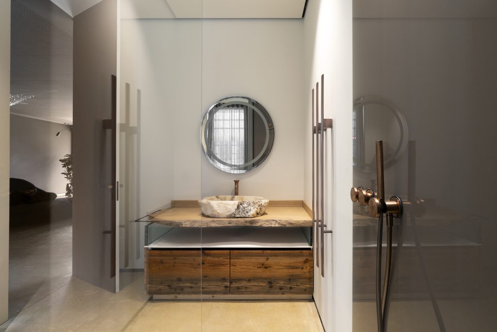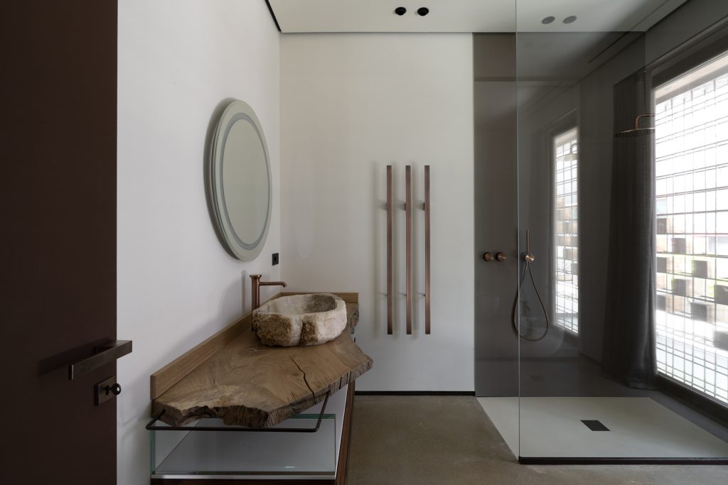 A completare il quadro, la finitura galvanica Rame Spazzolato Opaco, selezionata dall’arch. Duilio Damilano, crea un dialogo armonioso con gli altri elementi del bagno, come la rubinetteria, assicurando una coerenza estetica e materica.