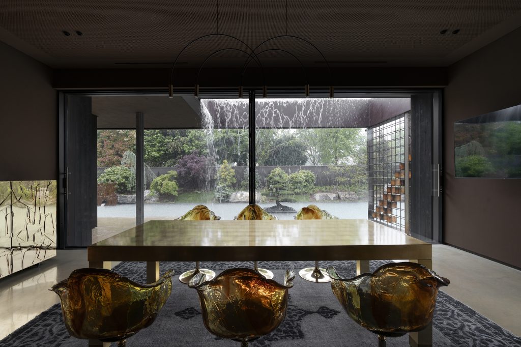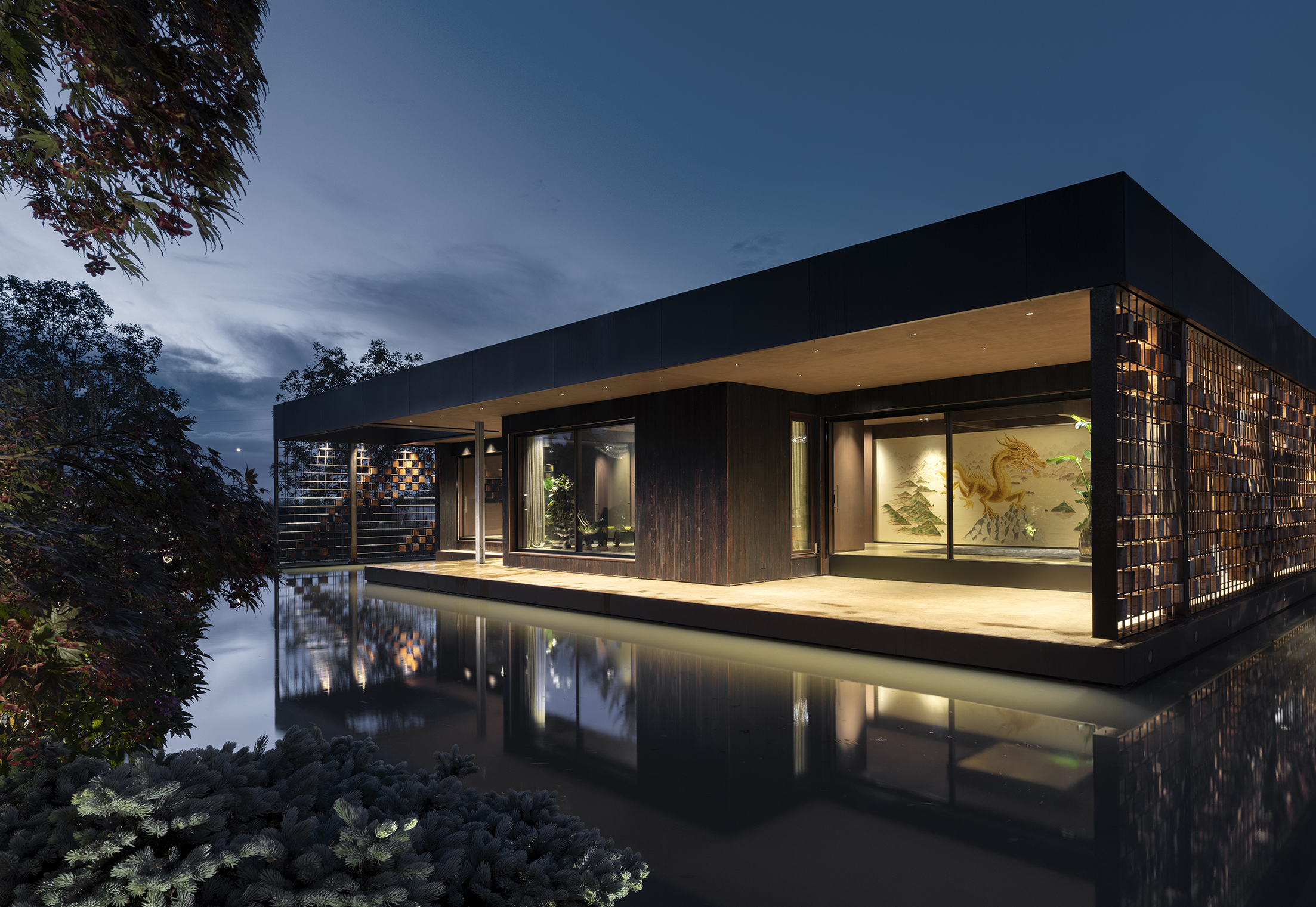 Situato all’interno di un’area industriale in Piemonte, il padiglione è immerso in un paesaggio dominato da uno specchio d’acqua di 580 metri e si caratterizza per le sue ampie vetrate, che dissolvono i confini tra interno ed esterno.