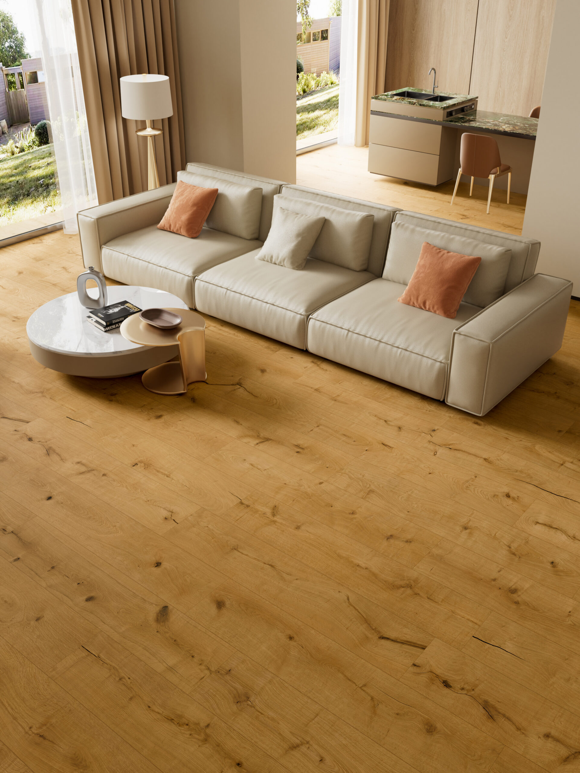 Il risultato è un pavimento in grado di rivestire superfici fino a 20 metri quadri senza alcuna replica visiva, consentendo di coprire un’intera stanza con doghe tutte diverse tra loro. Una caratteristica che rappresenta un cambio di paradigma per chi progetta spazi residenziali, hospitality o contract.