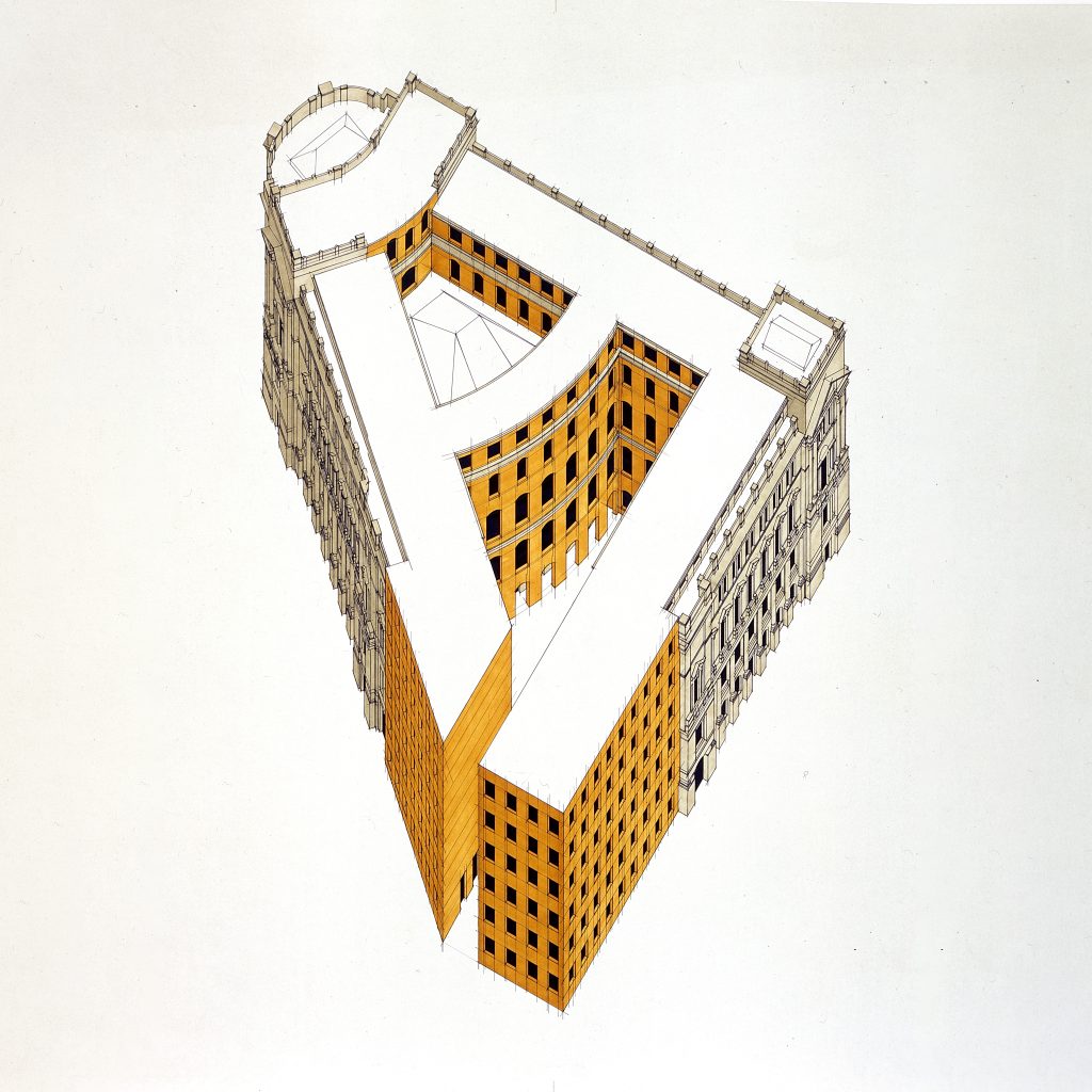 Ampliamento della Deutsche Bank a Lipsia, 1992. Immagine Archivio Giorgio Grassi, Collezione MAXXI Architettura