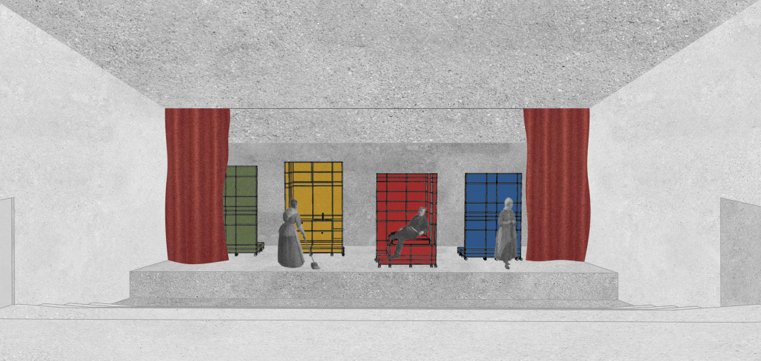 Composto da quattro moduli su ruote, ciascuno con due facce aperte, il concept riproduce ambienti domestici in colori distintivi: rosso per la camera da letto, giallo per la cucina, verde per il soggiorno e blu per il bagno. "Questa scelta progettuale è stata pensata per alterare la percezione dello spazio e la trama da parte del pubblico: un attimo prima si sta sbirciando in una scena privata, quello dopo ci si trova all'esterno, osservando una facciata. Per gli spettatori questa tecnica sarebbe un'esperienza visiva ludica e architettonica: una coreografia di stanze e colori che si trasforma in tempo reale davanti al pubblico. Tale processo, reso possibile da USM, rafforza così l'essenza viva e trasformativa del teatro, diventando oltretutto uno spunto di riflessione su come il design, pensato per uno specifico impiego, possa trovare nuove possibilità di utilizzo."