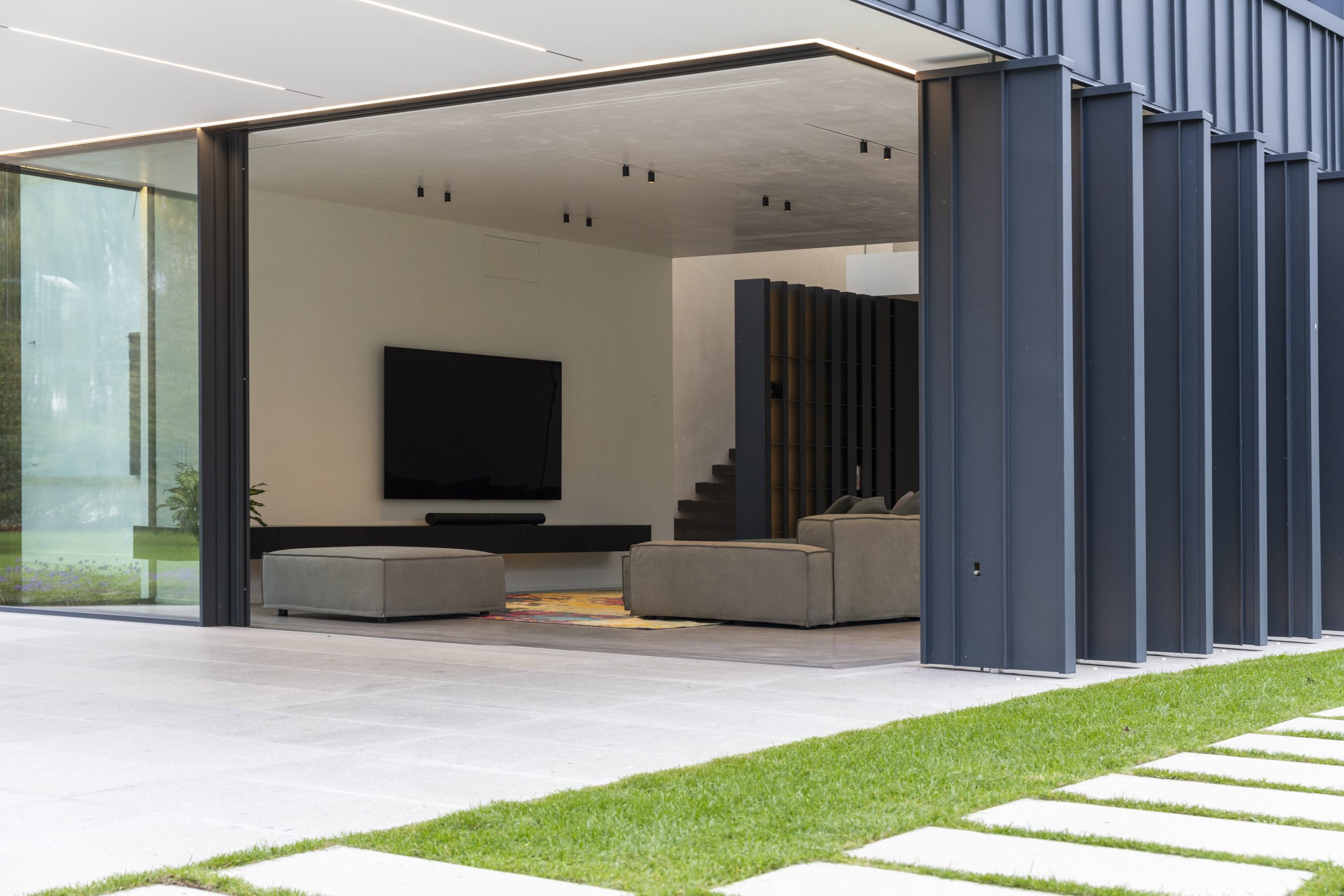 La cura maniacale di Fabbio Design per ogni dettaglio e una progettazione attenta hanno permesso di ridurre al minimo le interruzioni visive. La nuova parte della villa è concepita come un continuum tra ambienti interni ed esterni, e la scelta dei serramenti firmati Fabbio Design diventa centrale in questa visione.