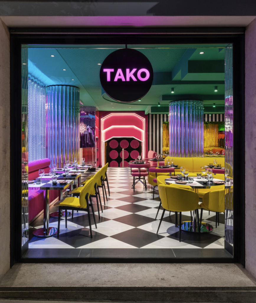 A pochi minuti dal Vaticano nasce TAKO Aurelia, ristorante sushi e cocktail bar firmato dallo studio COLLIDANIELARCHITETTO, che sceglie il linguaggio Memphis come matrice espressiva per interpretare una nuova idea di ospitalità urbana. Il progetto prende forma dal desiderio di superare il format tradizionale del sushi restaurant, sperimentando materiali inusuali e soluzioni luminose integrate all’architettura, per costruire un’esperienza immersiva e sorprendente. Ne emerge un ambiente dalla personalità decisa, dove un design eclettico e massimalista dialoga con cromie vibranti, grafiche geometriche e superfici specchianti e materiche.