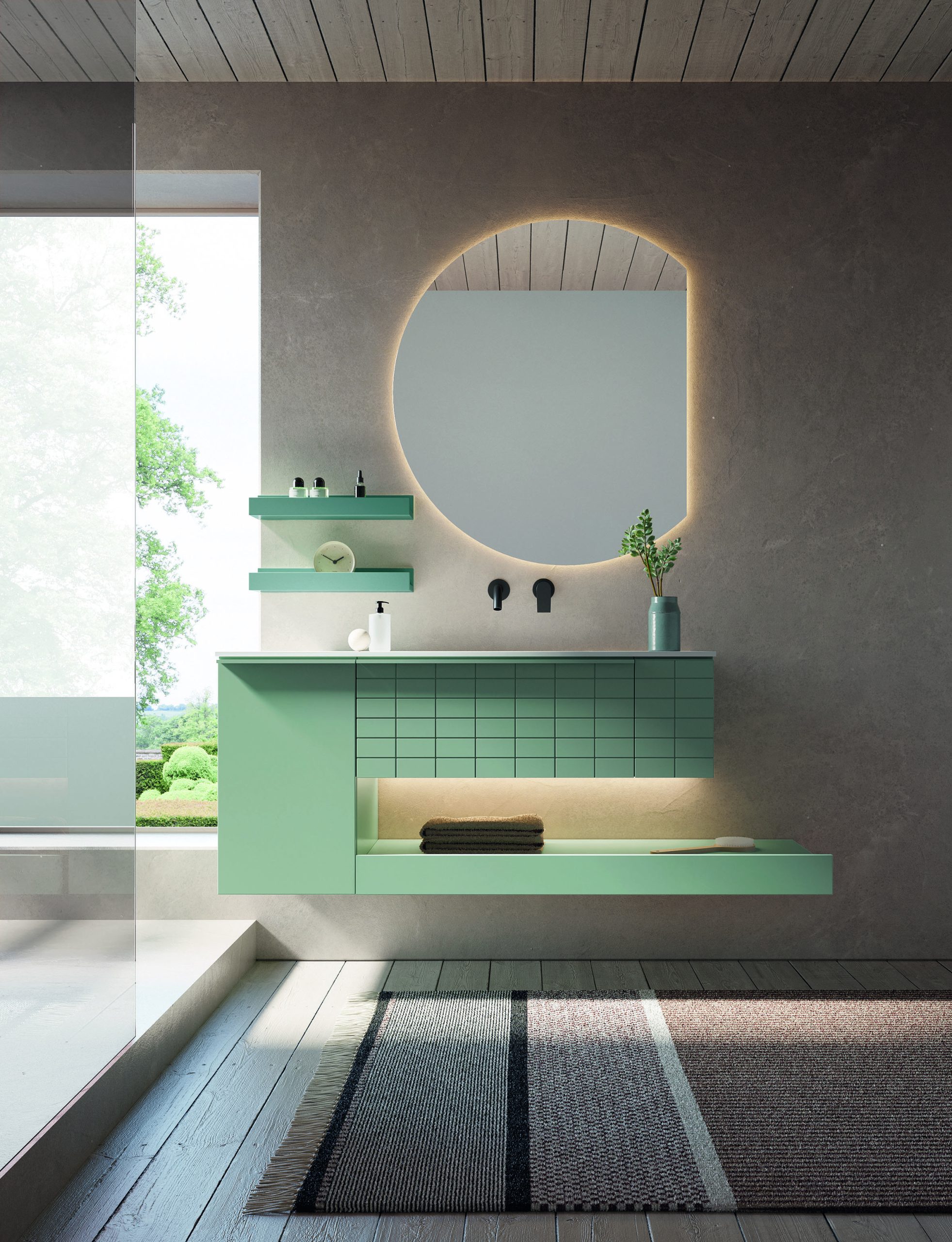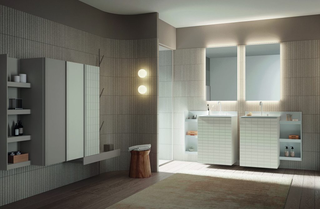 Oltre alla finitura Tile, la collezione include l’anta Onda, ispirata alle increspature del vento sull’acqua, e l’anta liscia, per chi predilige uno stile più sobrio. Con Tile, il bagno si trasforma in uno spazio dove la superficie diventa protagonista e il dettaglio progettuale non passa inosservato.