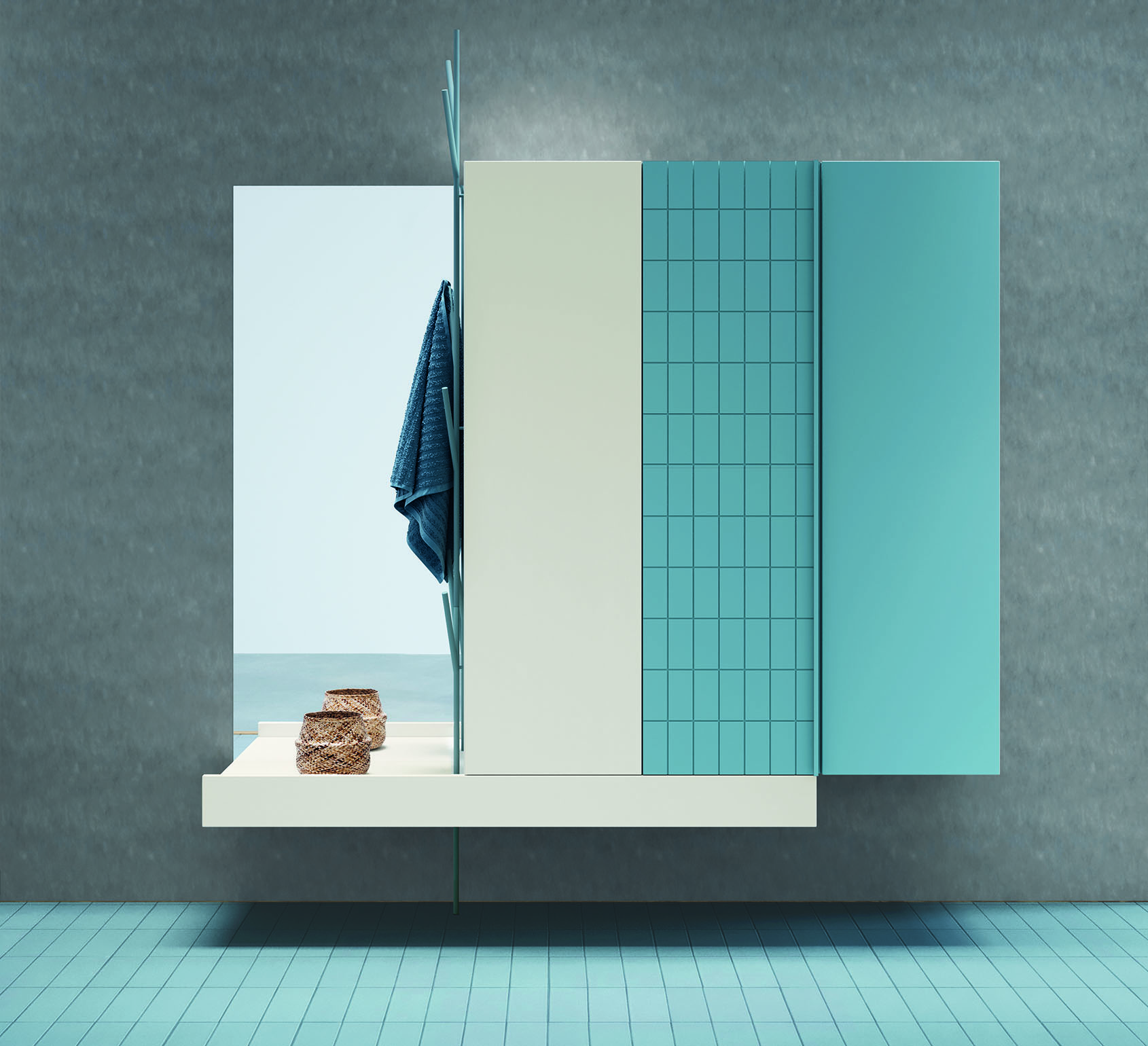 Il motivo geometrico, equilibrato e accattivante di Tile, dona profondità e personalità agli ambienti e con l’ampia gamma di 39 colori, tra laccati opachi e soft-touch, permette una totale libertà cromatica e progettuale.