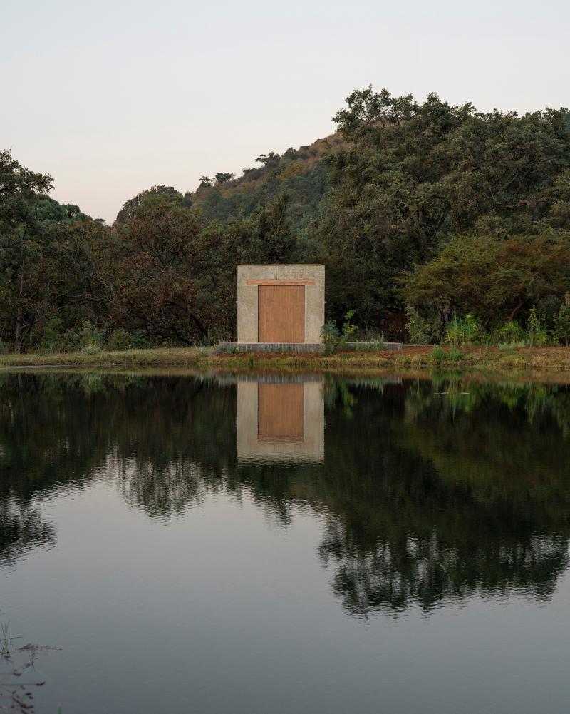 Più che un semplice oggetto architettonico, la casa diventa uno spazio di contemplazione e serenità, dove la natura assume un ruolo centrale. Ogni angolo incornicia e valorizza le viste circostanti, in particolare quelle sul lago. Questo specchio d’acqua non solo arricchisce visivamente il paesaggio, ma svolge anche una funzione ambientale, raccogliendo l’acqua piovana e rigenerando l’ecosistema del sito, rafforzando il carattere sostenibile del progetto.