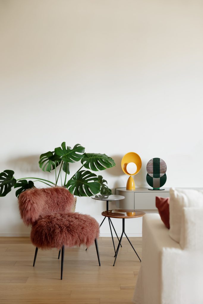 Il racconto cromatico prosegue nei dettagli d’arredo, dove suggestioni orientali e accenti di massimalismo statunitense trovano equilibrio nei contributi di designer e artigiani romani. Dai pannelli chinoiserie dipinti a mano di Officine Adda all’arazzo Zolfo Borromini prodotto da Torrilana e disegnato da Effimero Barocco, dalle ceramiche di Ari De Luca alle vetrinette e agli specchi di Giovanni Botticelli, fino alle luci poetiche di Barbara Andreotti, ogni elemento contribuisce a costruire un insieme coerente e personale.