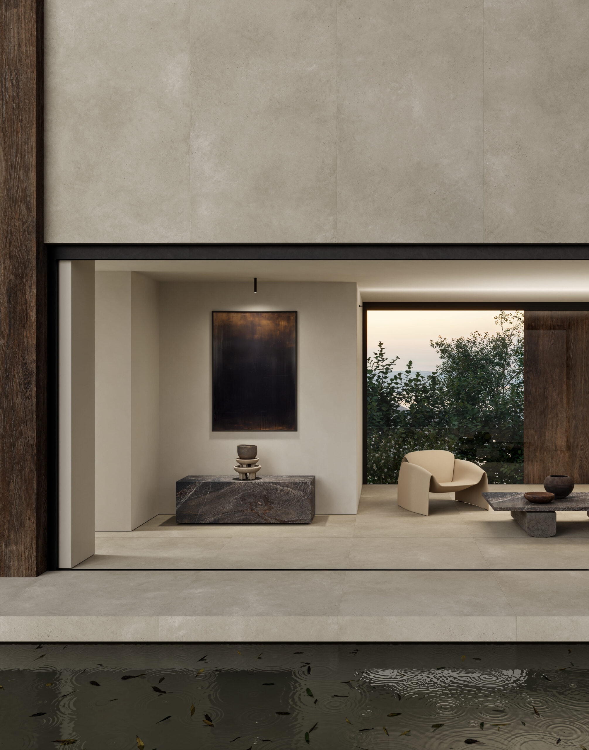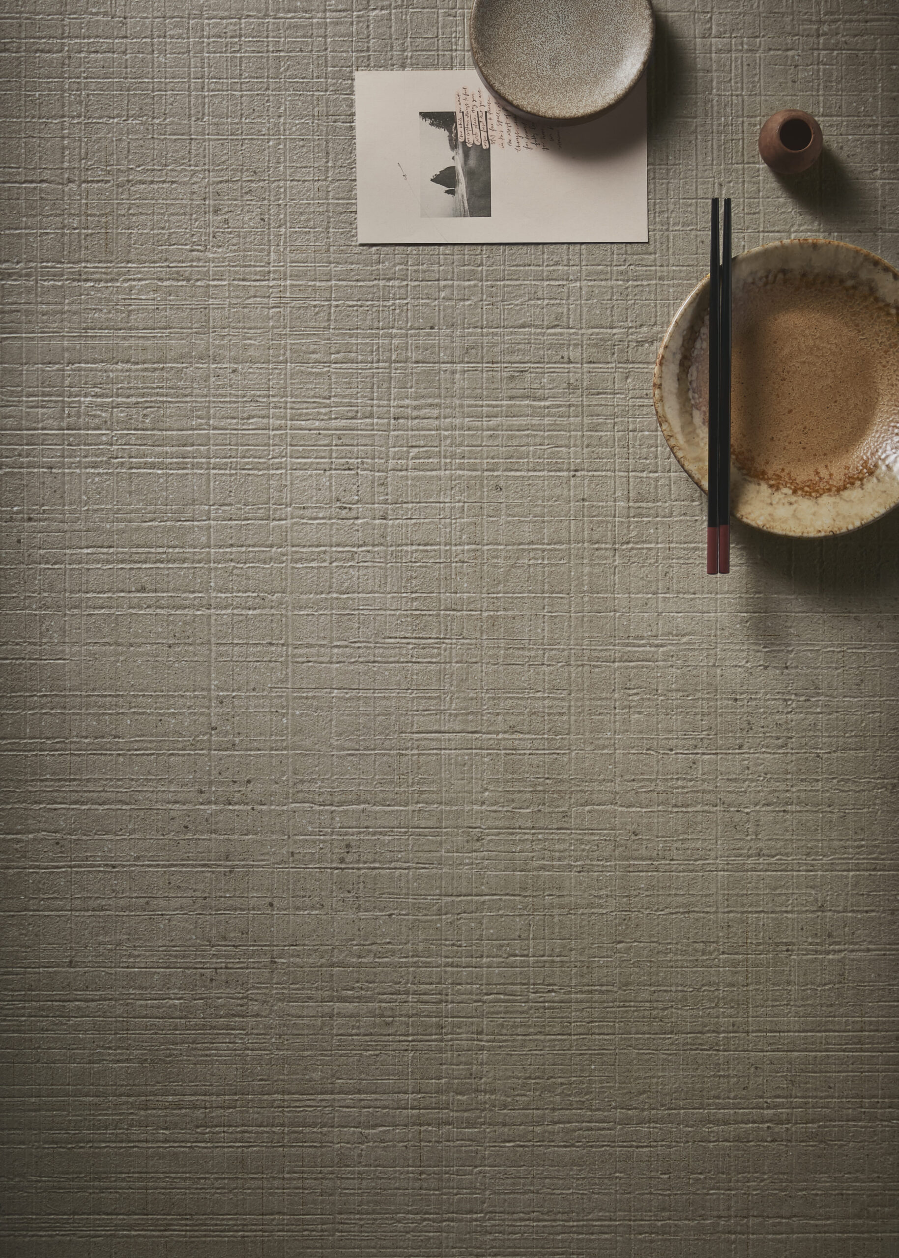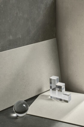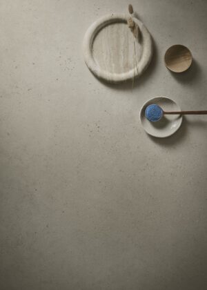 Le tre tonalità di Mūra esaltano il carattere del cemento senza artifici o eccessi che ne comprometterebbero l’autenticità: Lunara richiama la luce soffusa della calce, Sankira definisce lo spazio con equilibrio e intensità, mentre Ramira, caldo e sofisticato, evoca le naturali sfumature della terra. Le puntinature superficiali arricchiscono la tessitura, richiamando le bolle caratteristiche che si formano e si rompono durante l’asciugatura, aggiungendo profondità e ritmo visivo.