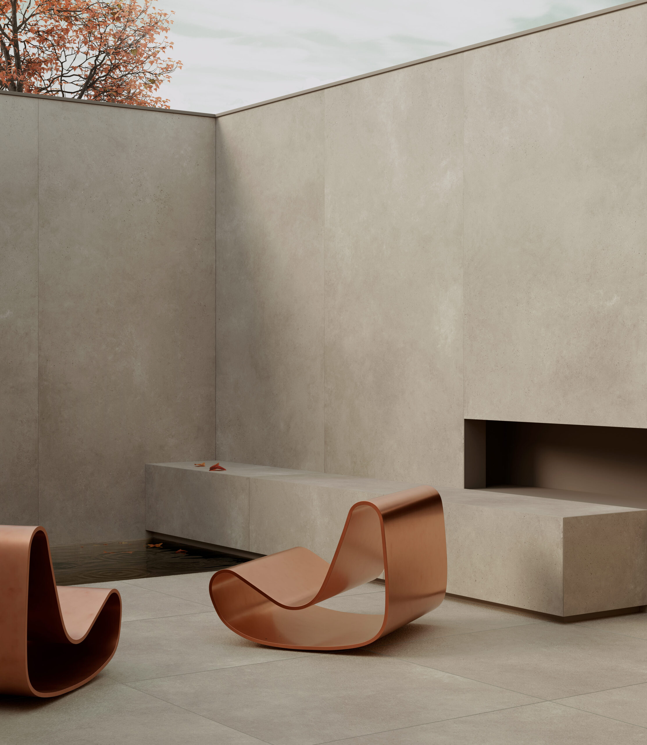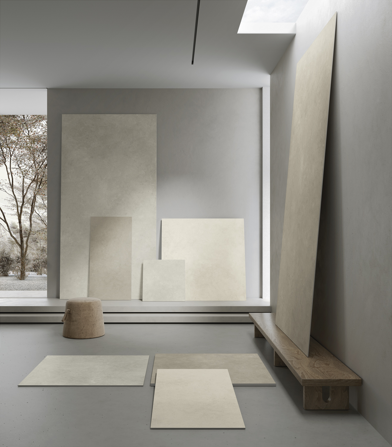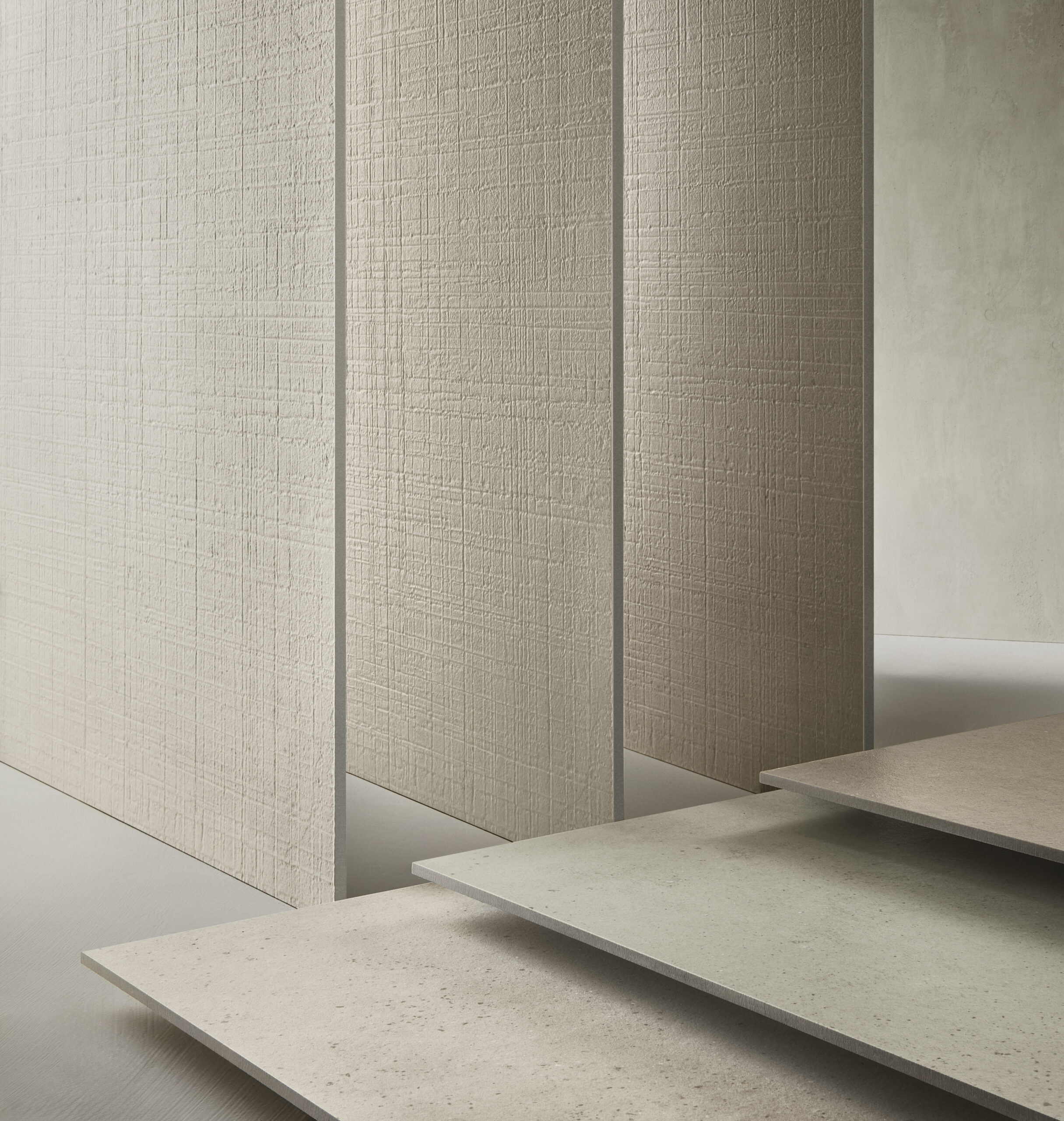I formati Classics offrono dimensioni più tradizionali (100x100 cm, 120x60 cm, 60x60 cm), disponibili con spessori di 6 mm e 8 mm. La finitura Natural Plus conferisce una morbidezza tattile al cemento, rendendolo perfetto per ambienti residenziali come soggiorni, bagni e cucine, ma anche per uffici e spazi pubblici. La linea è arricchita dal decoro Tessura: un intreccio misurato di segni e micro-rilievi che crea profondità visiva e un ritmo architettonico contemporaneo, modulando la luce e arricchendo il linguaggio tattile delle superfici con coerenza e sobrietà.