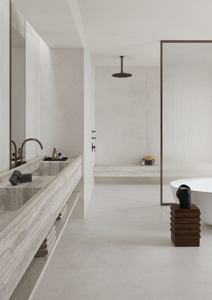 Mūra è il progetto in grès porcellanato di Ariostea che propone una nuova idea di cemento: essenziale, solido e segnato da piccole variazioni che raccontano come prende forma. Le superfici richiamano ossidazioni e leggere sfumature metalliche, trasformando ogni lastra in un segno autentico del costruire. Le forme emergono con naturalezza e dialogano con la struttura, che diventa parte dell’estetica complessiva. Ne deriva un equilibrio semplice tra peso e luce, tra presenza e apertura dello spazio. Tracce, direzioni e profondità creano un ritmo che accompagna la continuità degli ambienti, in una relazione poetica tra architettura e gesto progettuale. Un confronto misurato tra contenimento e slancio, tra materia e luminosità, tra rigore e quiete.