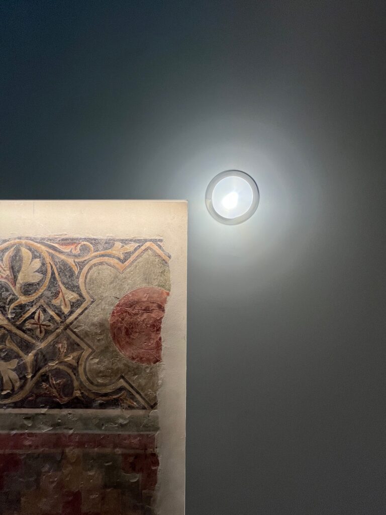 La luce gioca un ruolo fondamentale nella definizione degli ambienti. Il progetto illuminotecnico è pensato per esaltare tanto gli elementi storici quanto il disegno degli arredi contemporanei: le superfici in pietra e laterizio vengono valorizzate con interventi puntuali che ne evidenziano la matericità, mentre i volumi più recenti emergono con una chiarezza formale che contribuisce a costruire una percezione spaziale coerente e armonica.