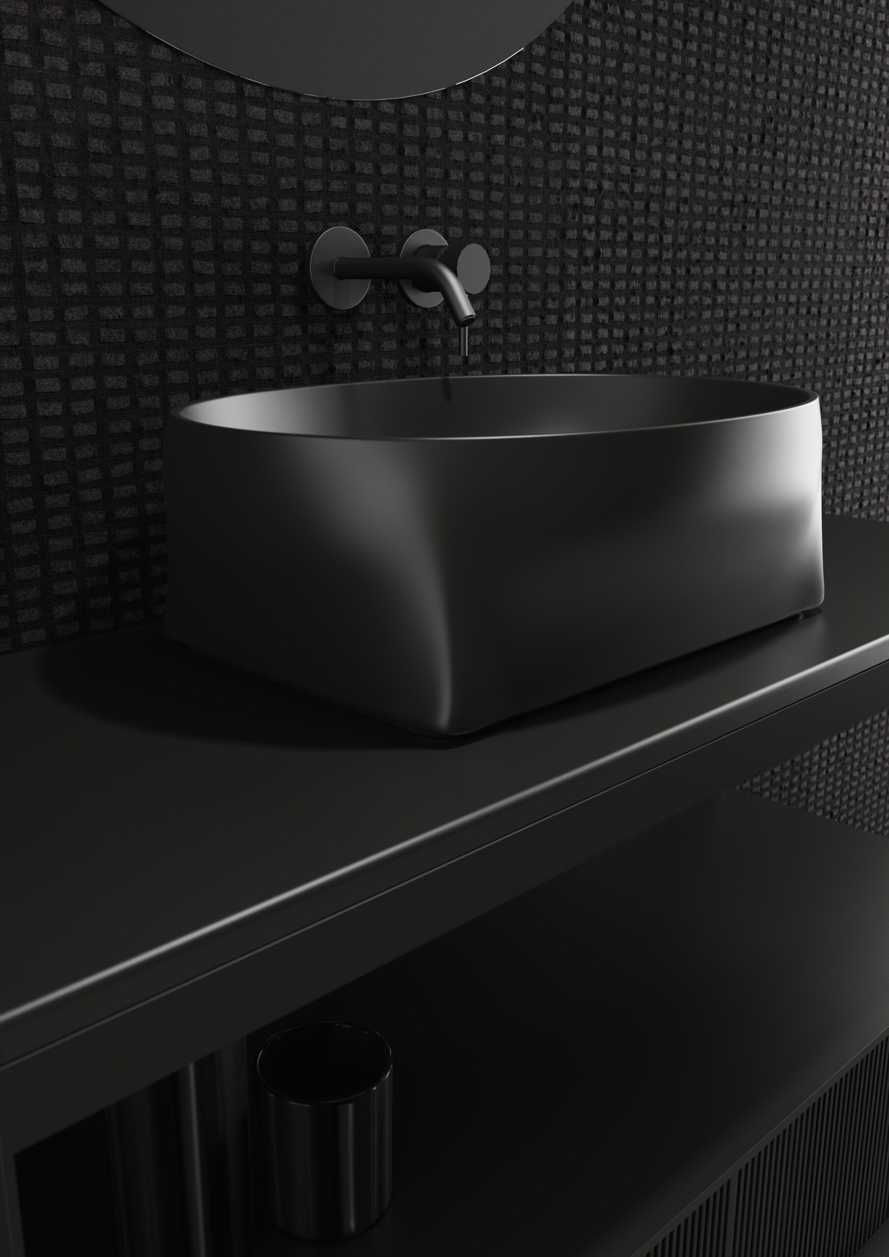 La forma ibrida risponde a precise esigenze funzionali. La base quadrata assicura stabilità e semplicità di installazione, mentre la parte superiore circolare ottimizza lo spazio e la capacità contenitiva. Il risultato è un lavabo intuitivo, pratico e piacevole da utilizzare, capace di elevare un gesto quotidiano come il lavarsi in un momento di autentico benessere.