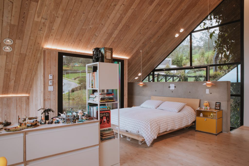 Sulle colline nebbiose di Alto de Las Palmas, vicino a Medellín, una struttura nera dal design insolito emerge dal paesaggio. A un primo sguardo appare enigmatica, quasi severa; ma varcando la soglia si rivela un rifugio caldo e poetico, dove natura, cultura e progetto convivono in perfetta sintonia. Non è semplicemente una casa: è un organismo vivente, pensato per riflettere l’identità di chi lo abita.