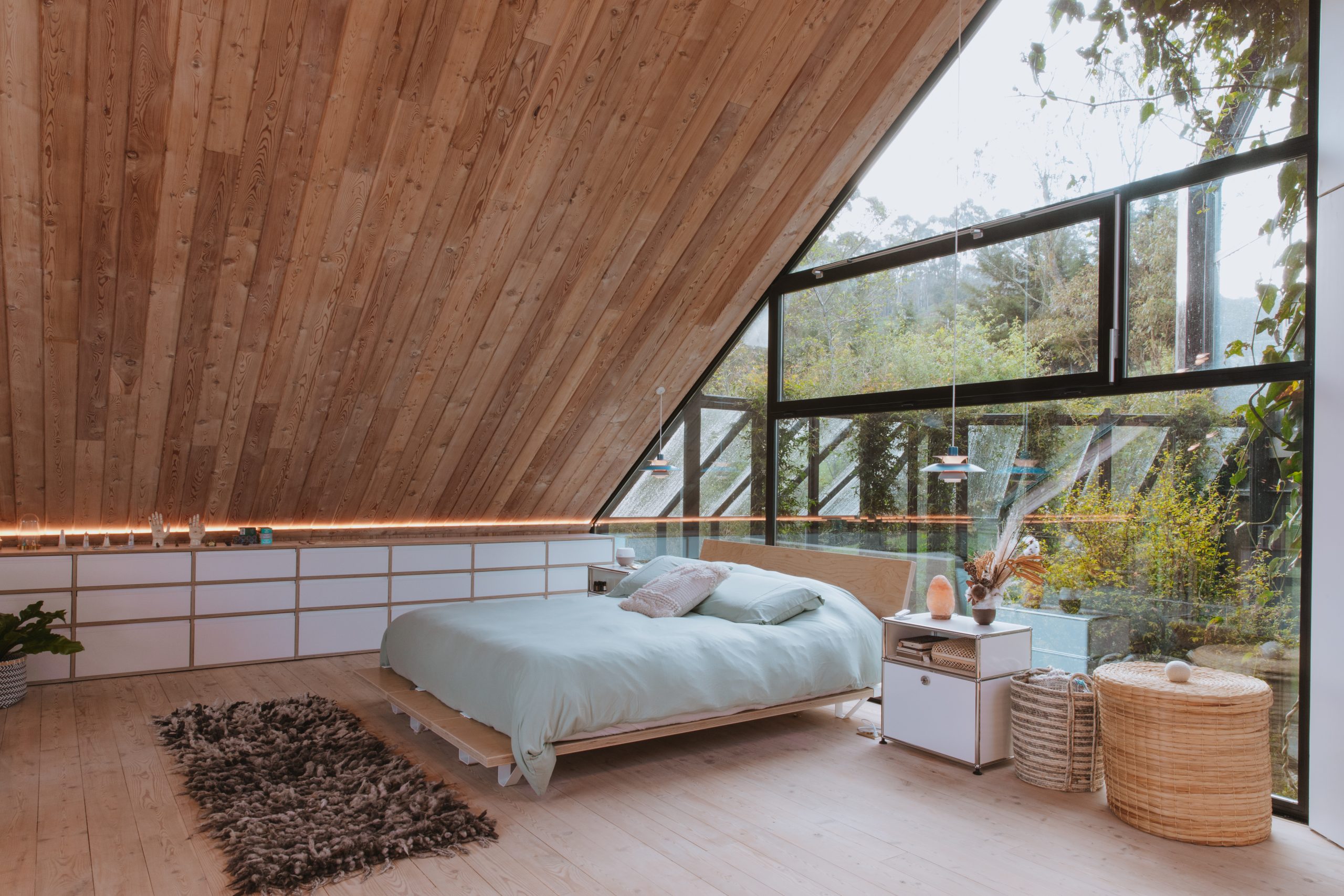 L’ispirazione affonda le radici in tre culture che hanno segnato la vita dei proprietari: la tradizione svizzera, con il calore del legno e la solidità degli chalet alpini; l’essenzialità giapponese, con il minimalismo e la filosofia Wabi Sabi; e l’energia vibrante della Colombia, che dona colore e vitalità agli ambienti. Ne nasce un equilibrio raffinato tra materiali naturali, linee pure e dettagli vividi. Le ceramiche di artigiani locali e i tappeti tessuti a mano dialogano con elementi contemporanei e funzionali, creando un continuo scambio tra culture e tradizioni.
