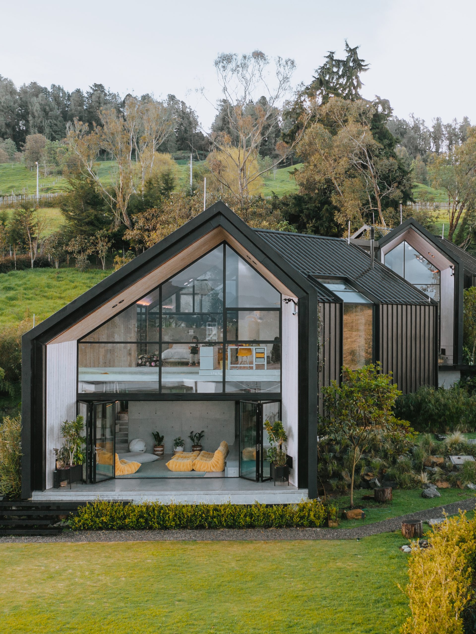 Sulle colline nebbiose di Alto de Las Palmas, vicino a Medellín, una struttura nera dal design insolito emerge dal paesaggio. A un primo sguardo appare enigmatica, quasi severa; ma varcando la soglia si rivela un rifugio caldo e poetico, dove natura, cultura e progetto convivono in perfetta sintonia. Non è semplicemente una casa: è un organismo vivente, pensato per riflettere l’identità di chi lo abita.