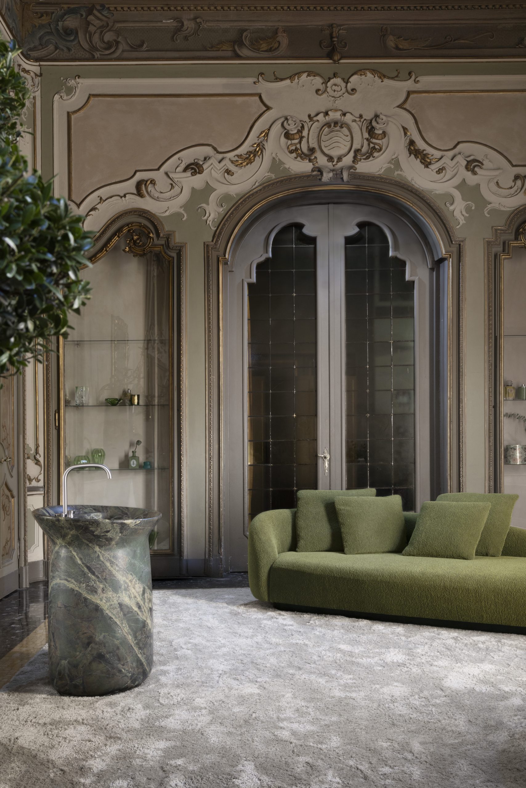 “Majesté trasforma il bagno in un regno di raffinata esclusività, dove la maestosità della natura si scolpisce nella pietra con forme fluide e scultoree, per dare vita a un’esperienza estetica e sensoriale senza tempo,” spiega Monica Armani.