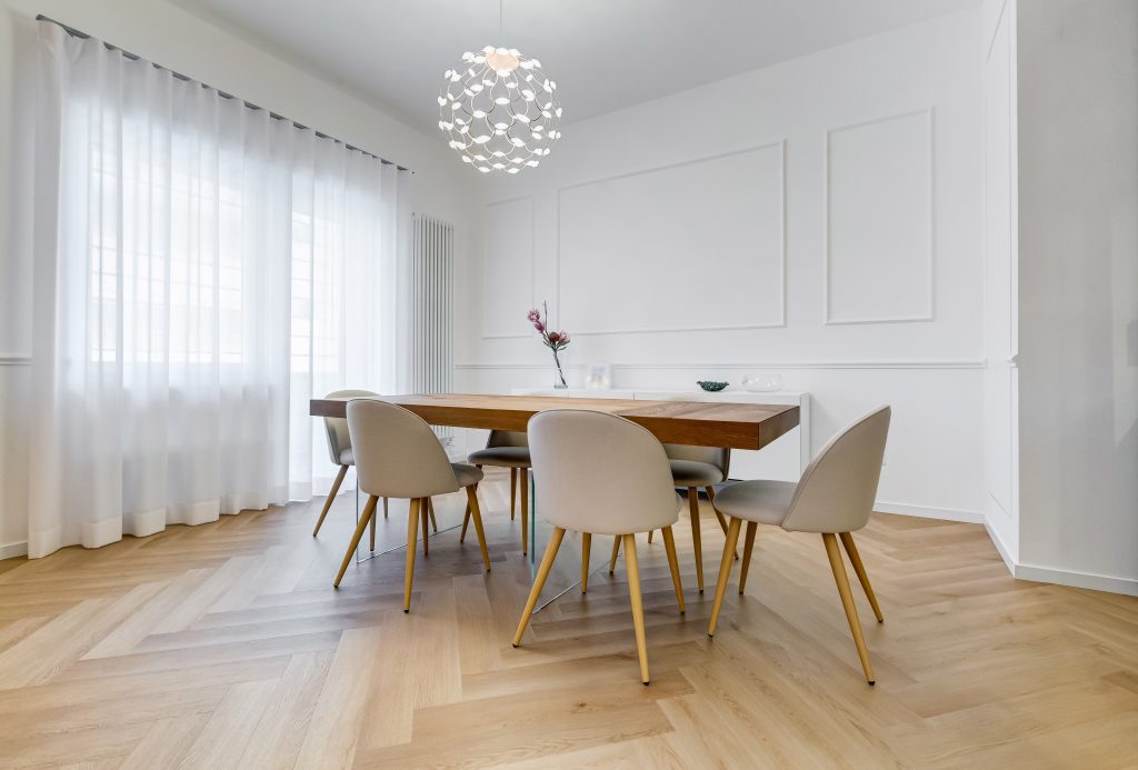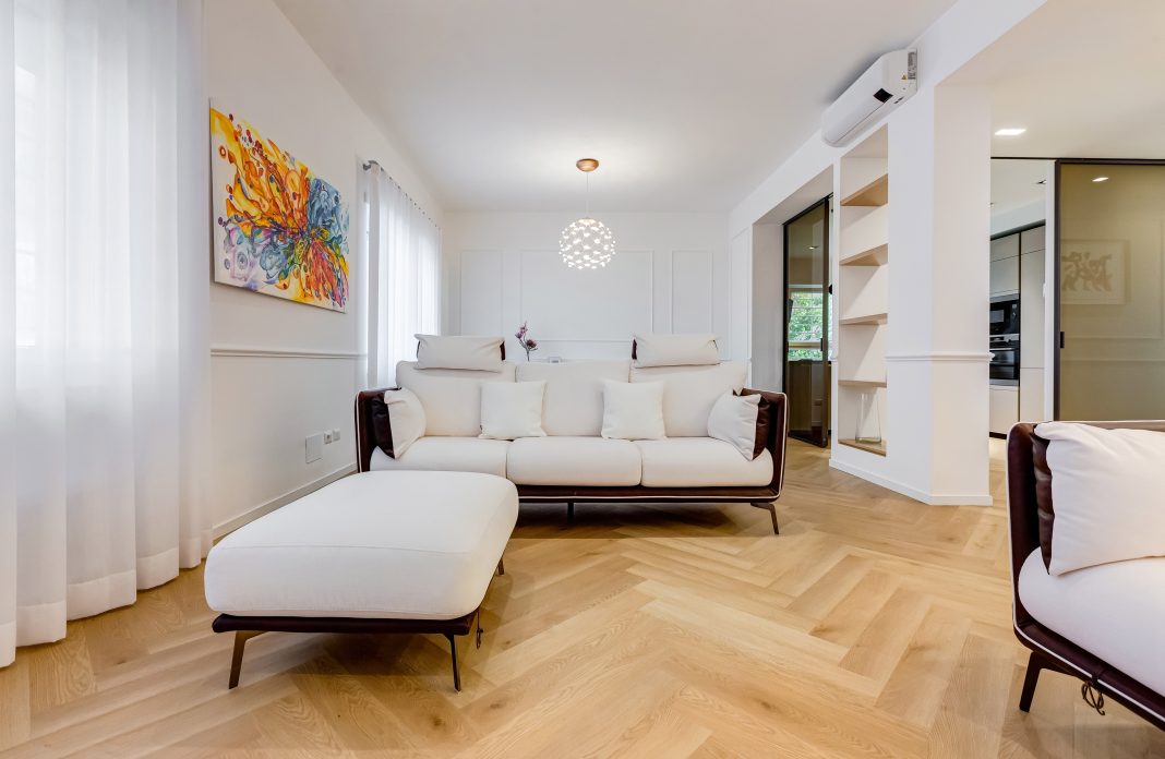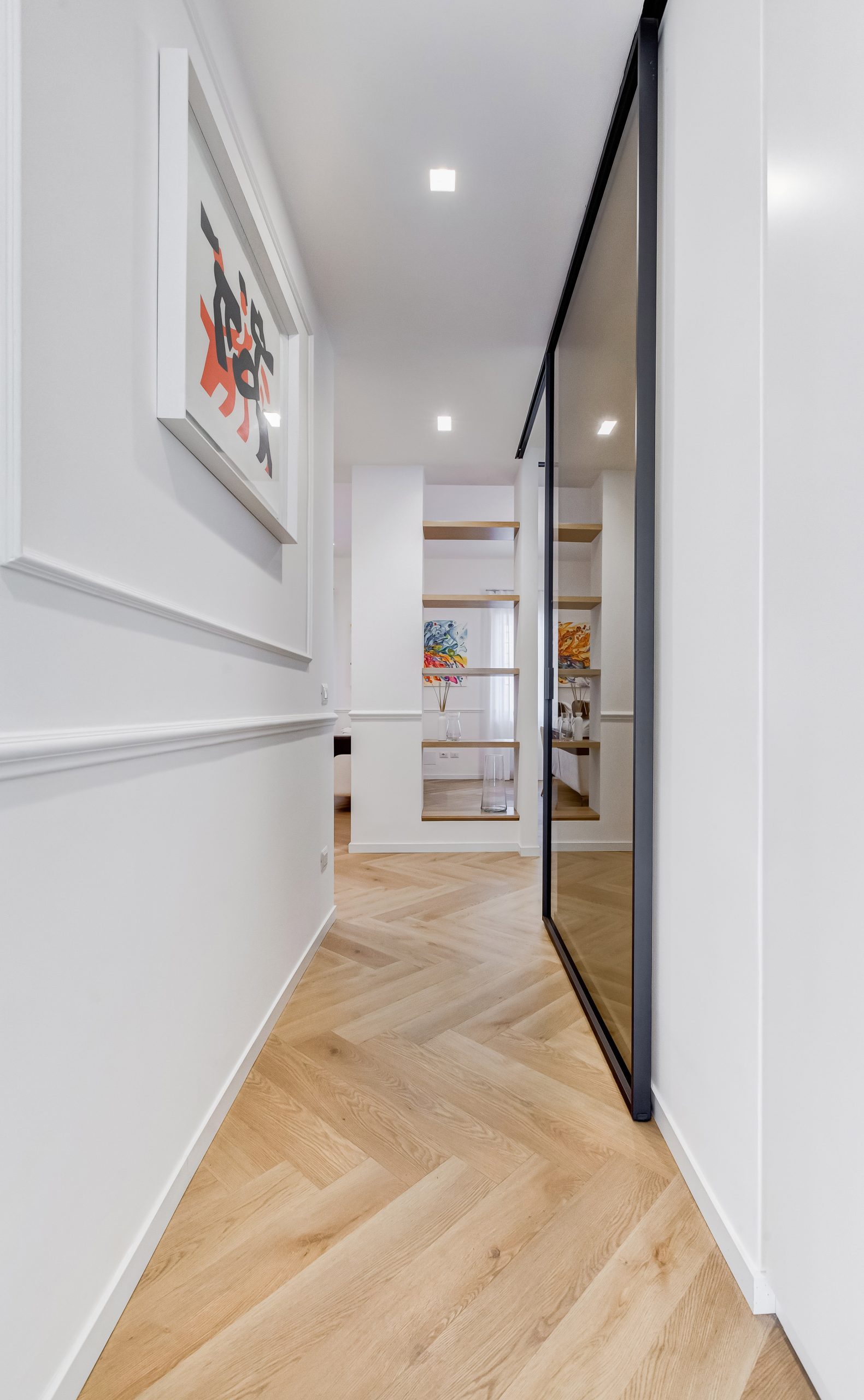 Un’abitazione privata di 130 mq è stata protagonista di una raffinata ristrutturazione d’interni firmata dall’architetto Michela Pandolfi. Per definire l’identità del progetto, lo studio ha scelto Clap!3D by Déco nella finitura Pinna, posato con schema a spina di pesce italiana su tutta la superficie calpestabile – inclusi cucina e bagni – dando vita a un continuum visivo elegante e armonioso.