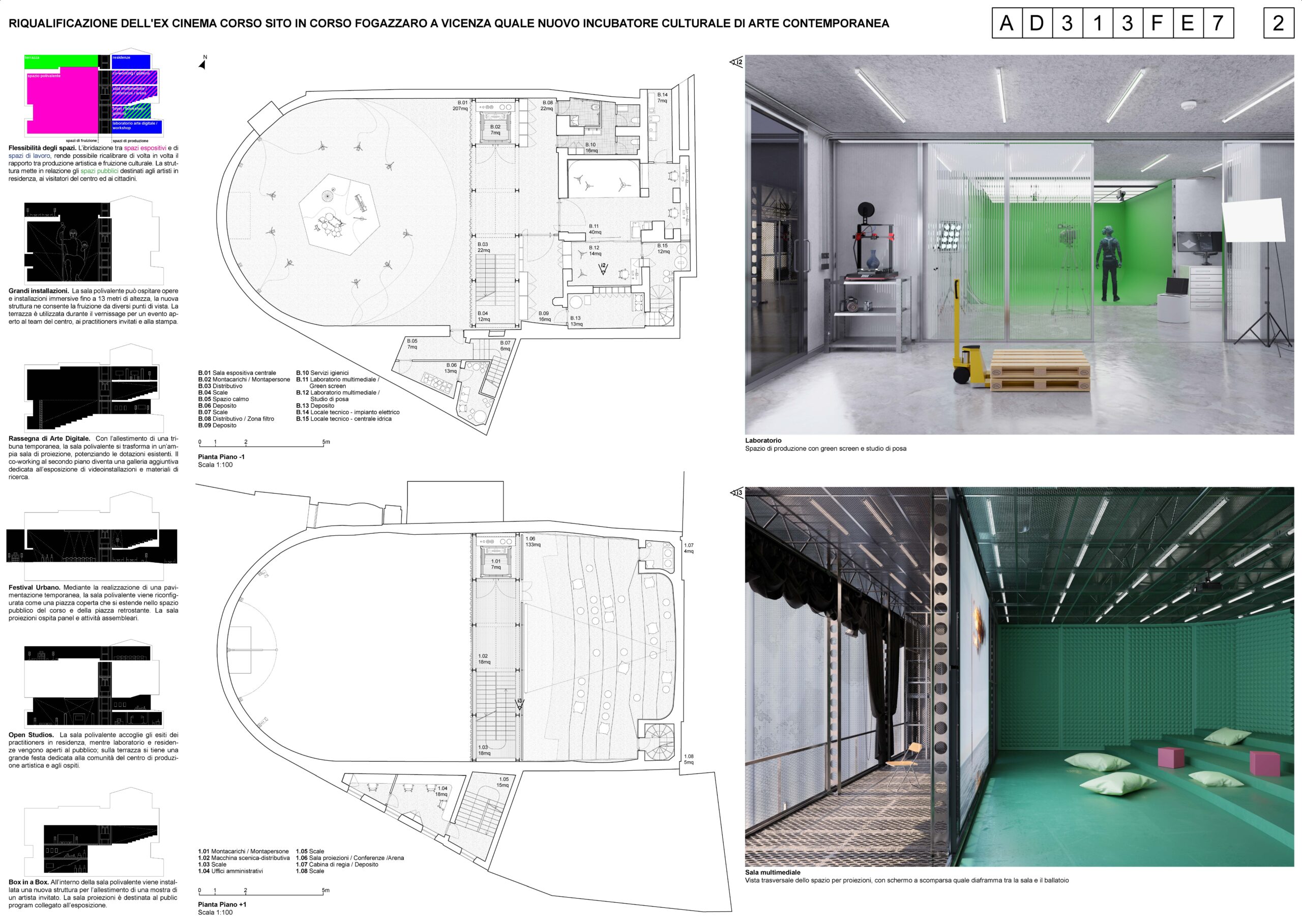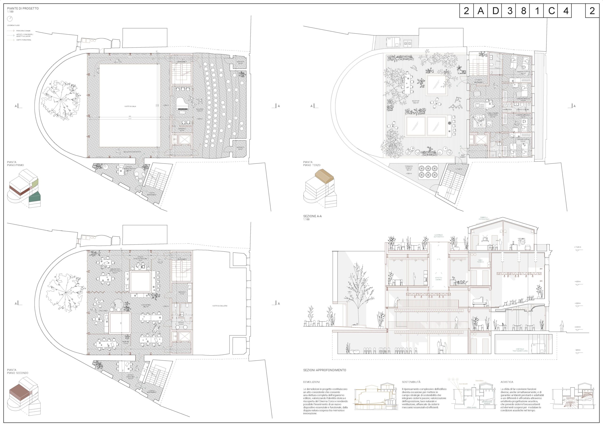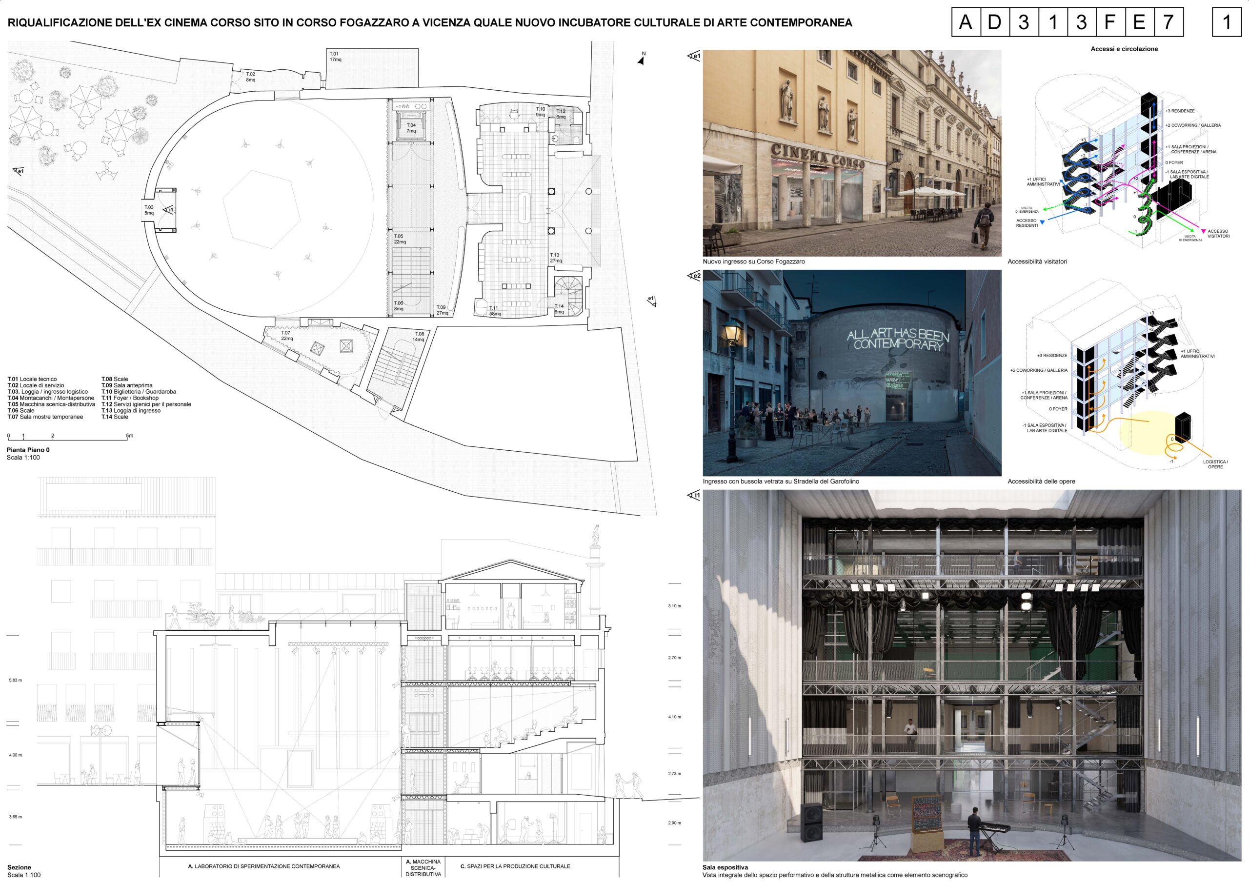Particolarmente significativa è la ridefinizione del rapporto con la città: l’inversione degli accessi trasforma il retro dell’edificio in una nuova soglia pubblica, valorizzando la piccola piazza come luogo di incontro e restituendo al Corso una dimensione urbana più aperta e inclusiva. Ne emerge uno spazio culturale concepito non come contenitore, ma come ambiente attivo e adattabile, capace di accogliere una pluralità di usi - dalle pratiche espositive e performative alle attività di laboratorio e ricerca - e di evolvere nel tempo insieme alle esigenze della comunità. Il progetto restituisce così all’Ex Cinema Corso una nuova centralità, non solo come edificio recuperato, ma come infrastruttura culturale capace di generare socialità, produzione e nuova vita urbana.