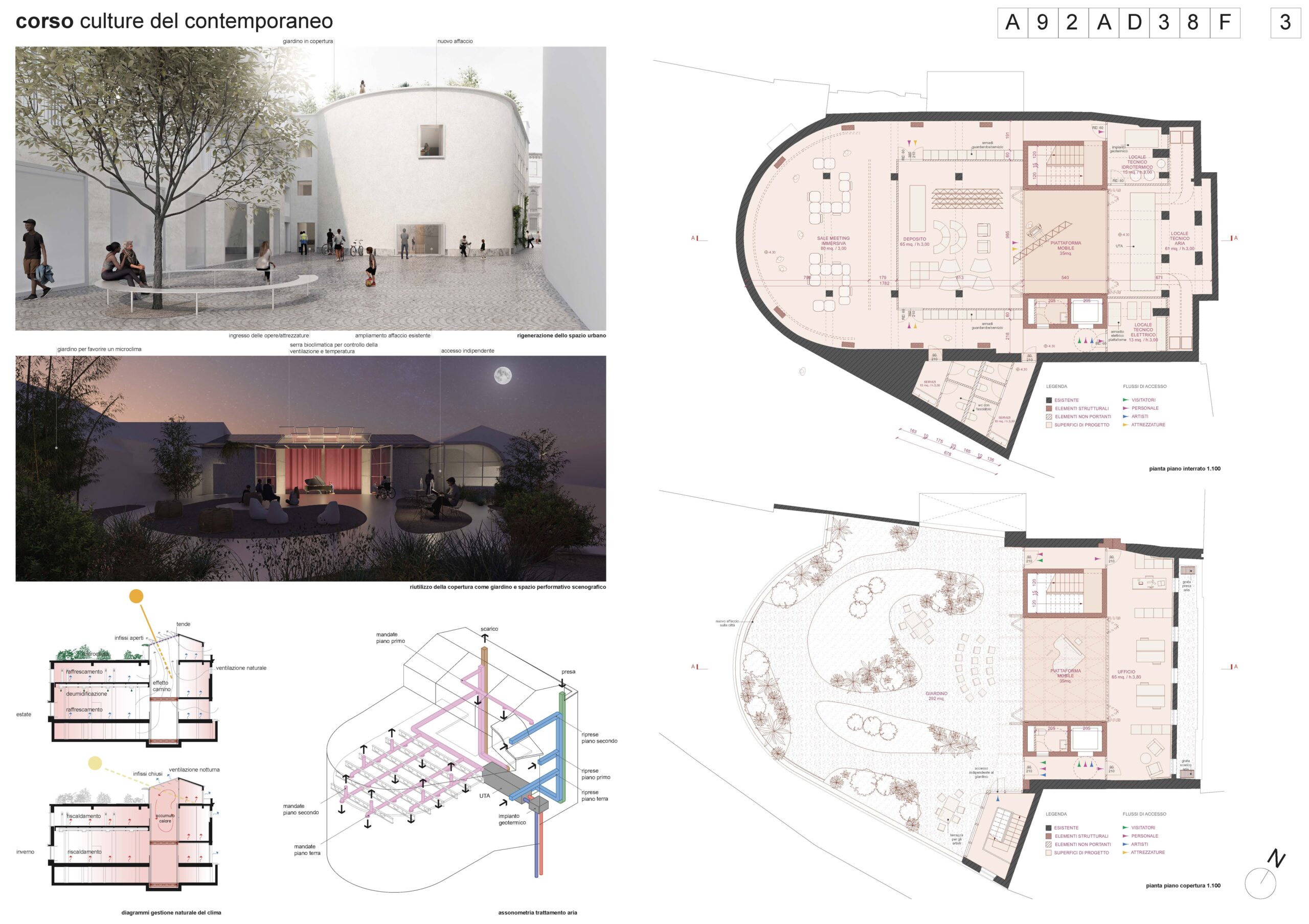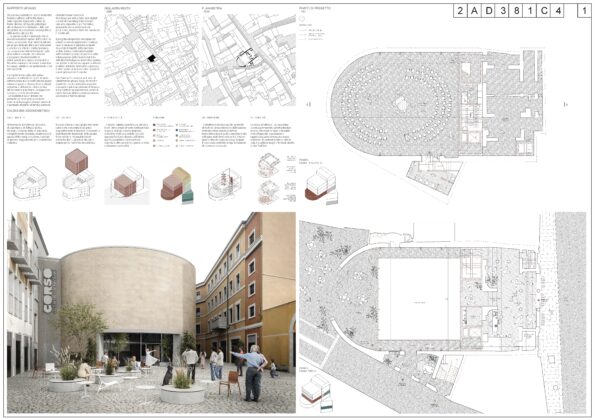 L’altro raggruppamento quarto classificato (ex aequo) guidato da SDV + SUPERSPATIAL + arch. Giuseppe Chiariello, ha sviluppato una proposta che enfatizza la dimensione esperienziale e immersiva dello spazio, immaginando il Corso come ambiente capace di trasformarsi in relazione agli eventi e ai contenuti, con un forte accento sulla dimensione performativa e partecipativa.