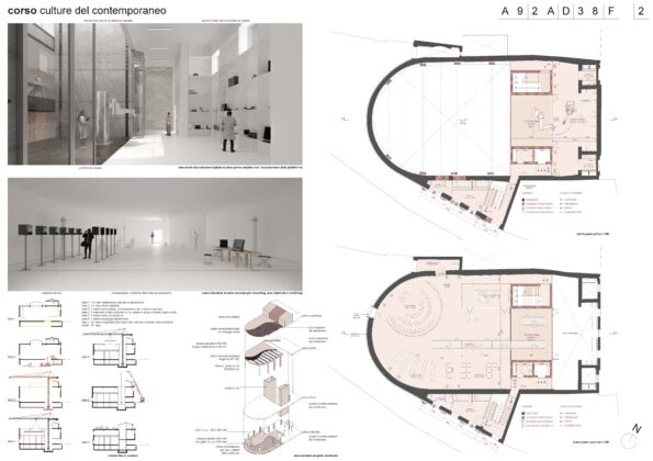 Il raggruppamento secondo classificato, guidato da CHORUS + Fosbury Architecture + Artefice + Prodim + Consulenti, ha sviluppato una proposta fortemente orientata alla ridefinizione spaziale interna, immaginando il Corso come sequenza di ambienti differenziati e connessi, capaci di articolare una pluralità di usi e di pubblici, con particolare attenzione alla fruizione contemporanea e alla modularità.